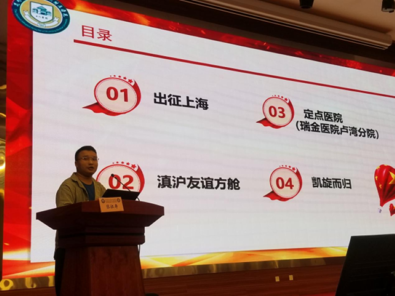 麻醉手术室护士,护理部团支部书记张祖寿作了题为《无畏的二院青年》的分享。作为95后护士,他分享了自己主动报名出征上海,到滇沪友谊舱开展工作的情况,并被分配到定点医院参与护理工作,在抗疫的辛劳中收获成长。