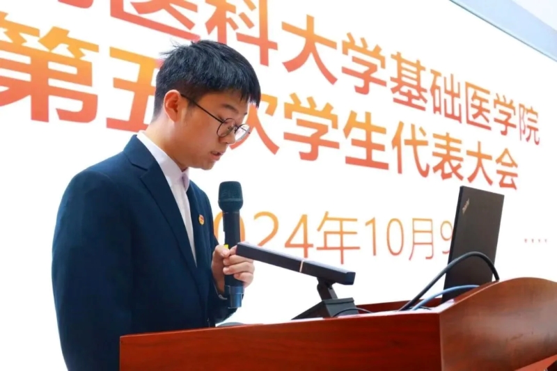 2024年10月9日,基础医学院第五次学生代表大会在呈贡校区学术交流中心第二报告厅召开。学院党委副书记管琳娜,学院团委书记曹琦,校学生会代表段钰宁及学院58名学生代表参加会议。