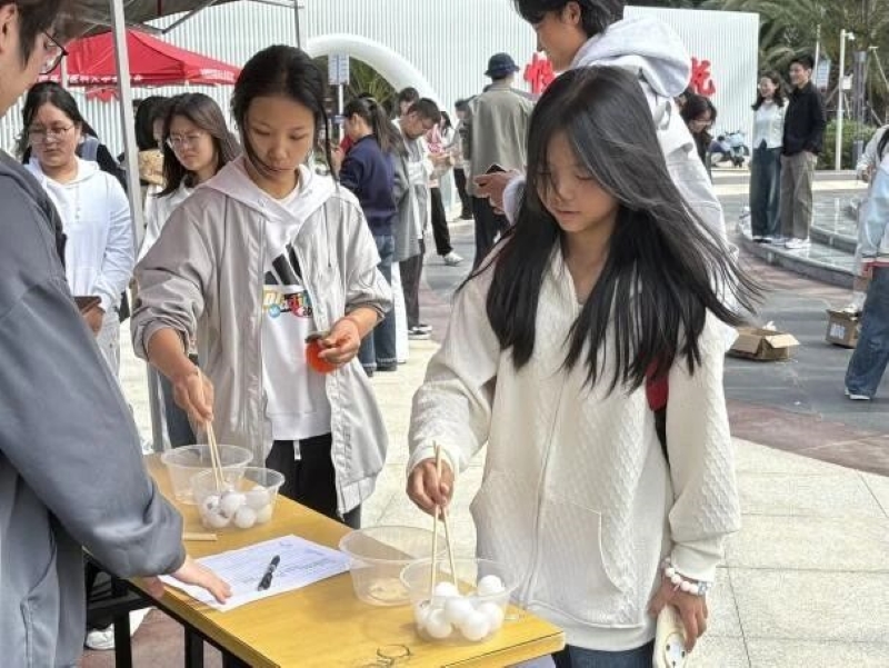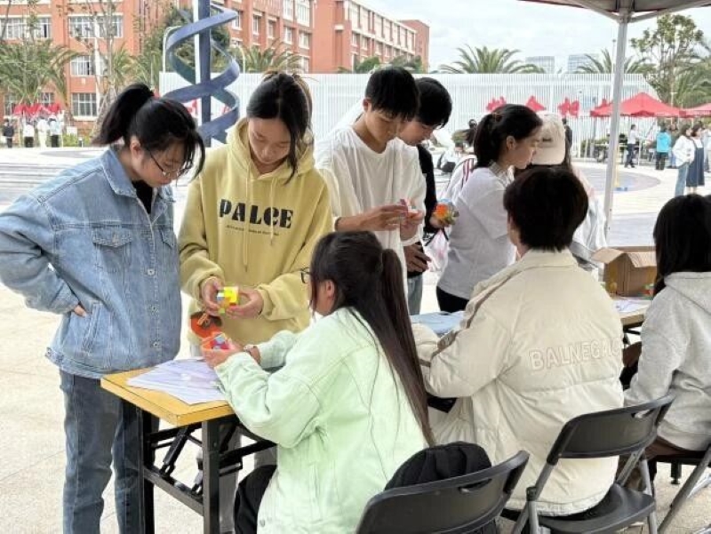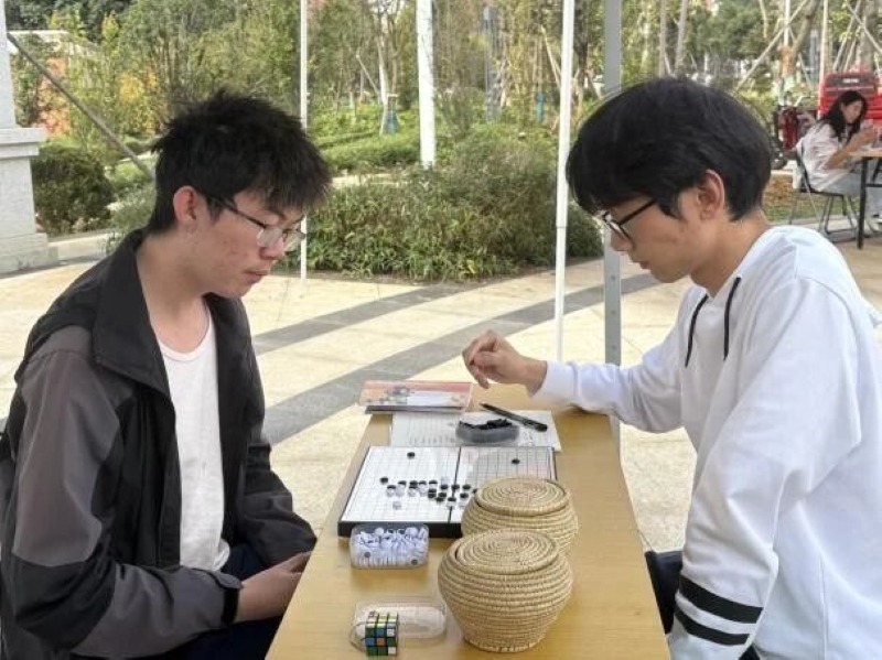 巧智问答、觅处寻宝,同学们在玩乐中欢畅运动,并赢得了丰厚礼品;蓝蝶围棋社与象棋社的帐篷里落满棋盘,棋手们在棋盘上沉稳博弈,没有下棋基础的参与者们则在一旁有序观战,学长学姐们把握教学契机为大家讲解,帮助零基础学员更好地掌握规则;魔方协会提供多式多样的魔方——三阶魔方、五魔方、镜面魔方……供同学们挑战复原;枫叶羽毛球协会的颠球挑战、定点击球挑战;乒乓球协会的水面吹乒乓球挑战;Scalpel skating轮滑协会的轮滑桩保龄球、“一二三,木头人”挑战……共同造就趣味横生、精彩纷呈的画面。
