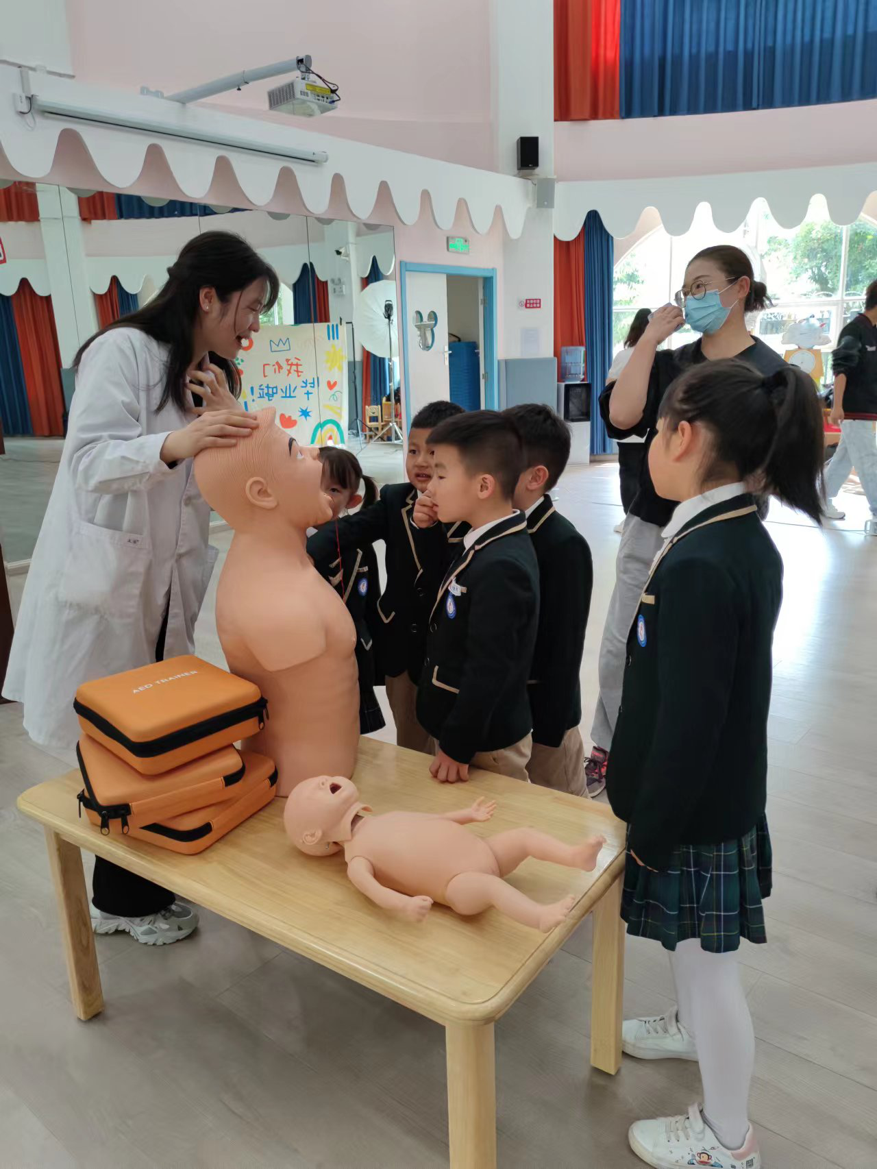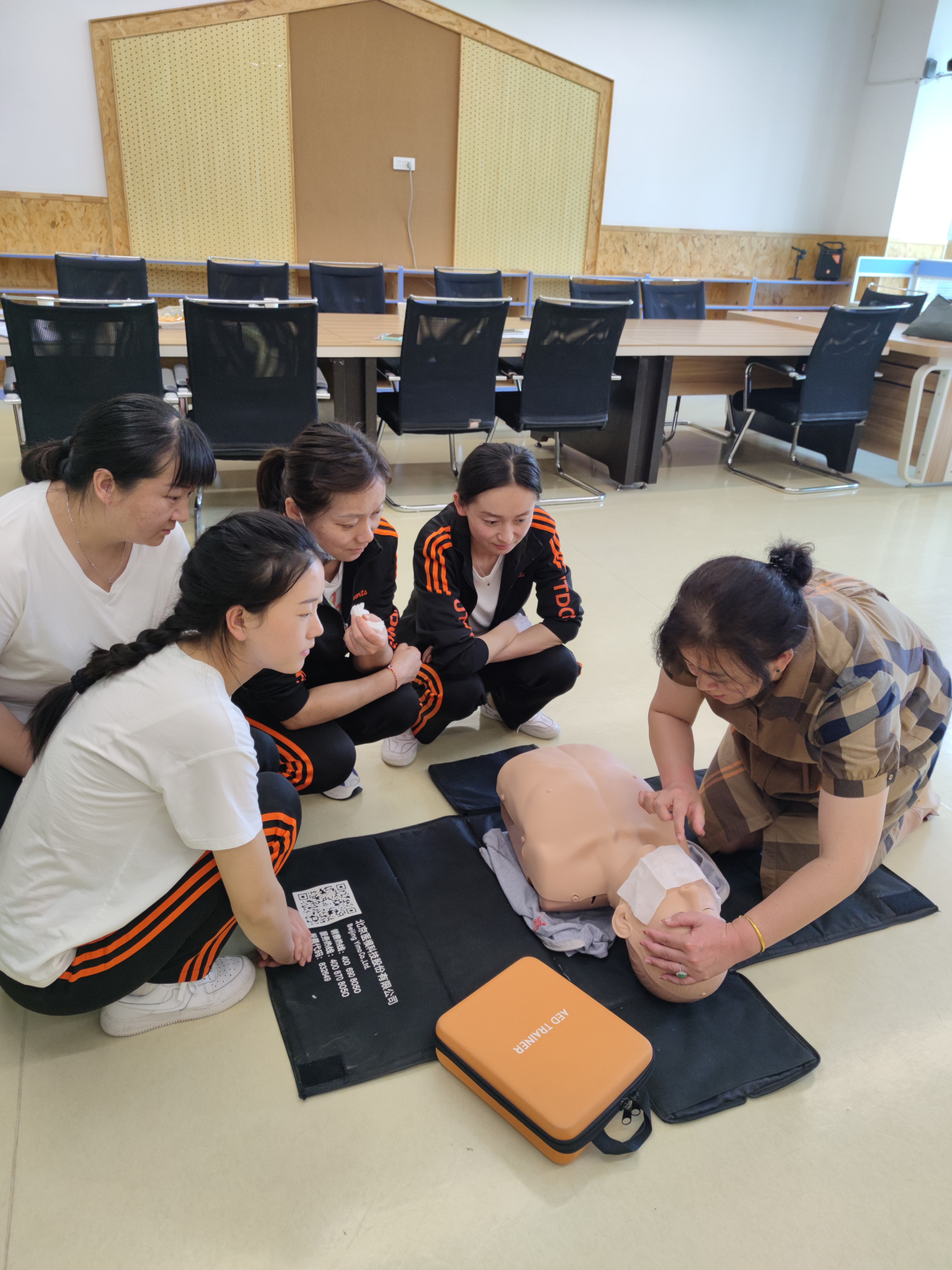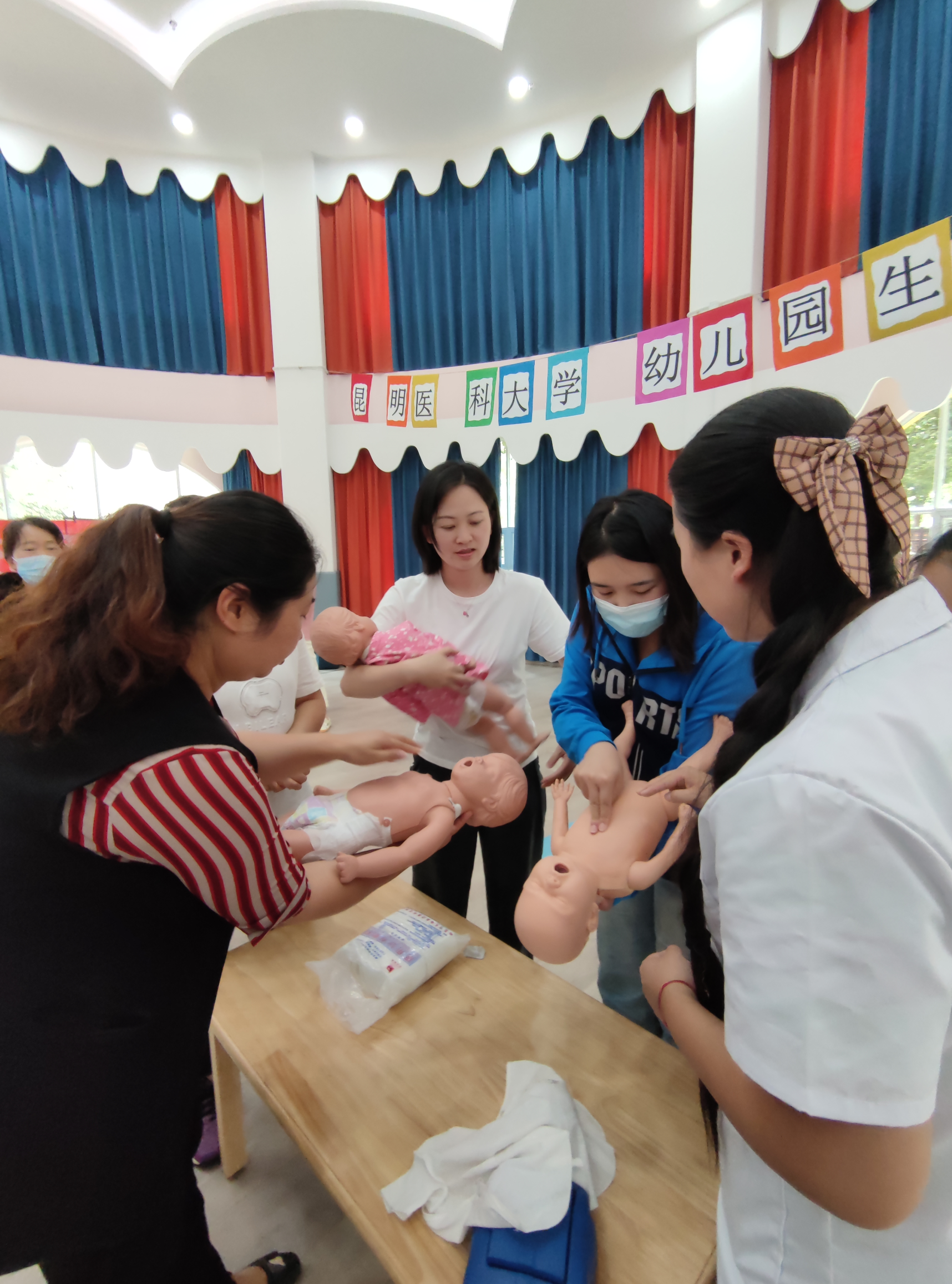 值此学校建校九十周年之际,为体现学校办学特色和社会服务理念,响应学校的号召,为母校九十周年华诞献礼,临床技能中心筹划了“建校90周年”系列活动,6月主题为“人人学急救,急救为人人”科普培训活动,6月26日、27日在后勤发展中心大力支持下,由临床技能中心党支部牵头、党外知识分子参与,到beat365中文官方网站幼儿园天润康园、吾悦花园两个园区为幼儿园教职工开展了急救知识培训活动,旨在提高幼儿园教师急救意识和互救能力。