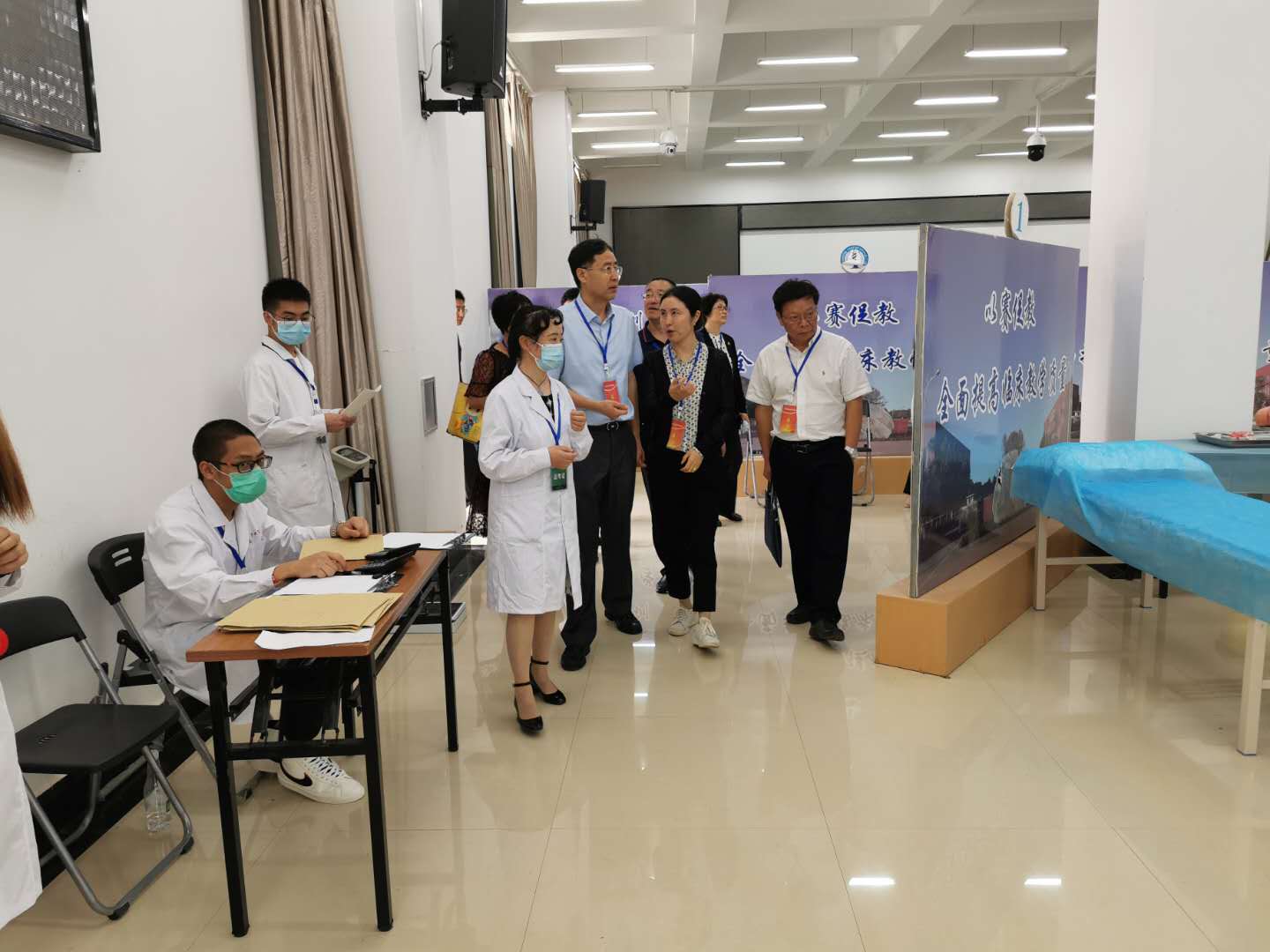 考试期间,云南省卫生健康委员会主任杨洋、副主任姜旭、医政医管局局长黄兴黎,昆明市卫生健康委员会党委书记张云海到校对考试工作进行全面督查并考察了临床技能中心。校长李松和副校长李燕参加督查和考察。杨洋一行对学校执考的组织实施和疫情防控工作给予了充分肯定,高度评价了我中心现代化模拟教育平台建设。