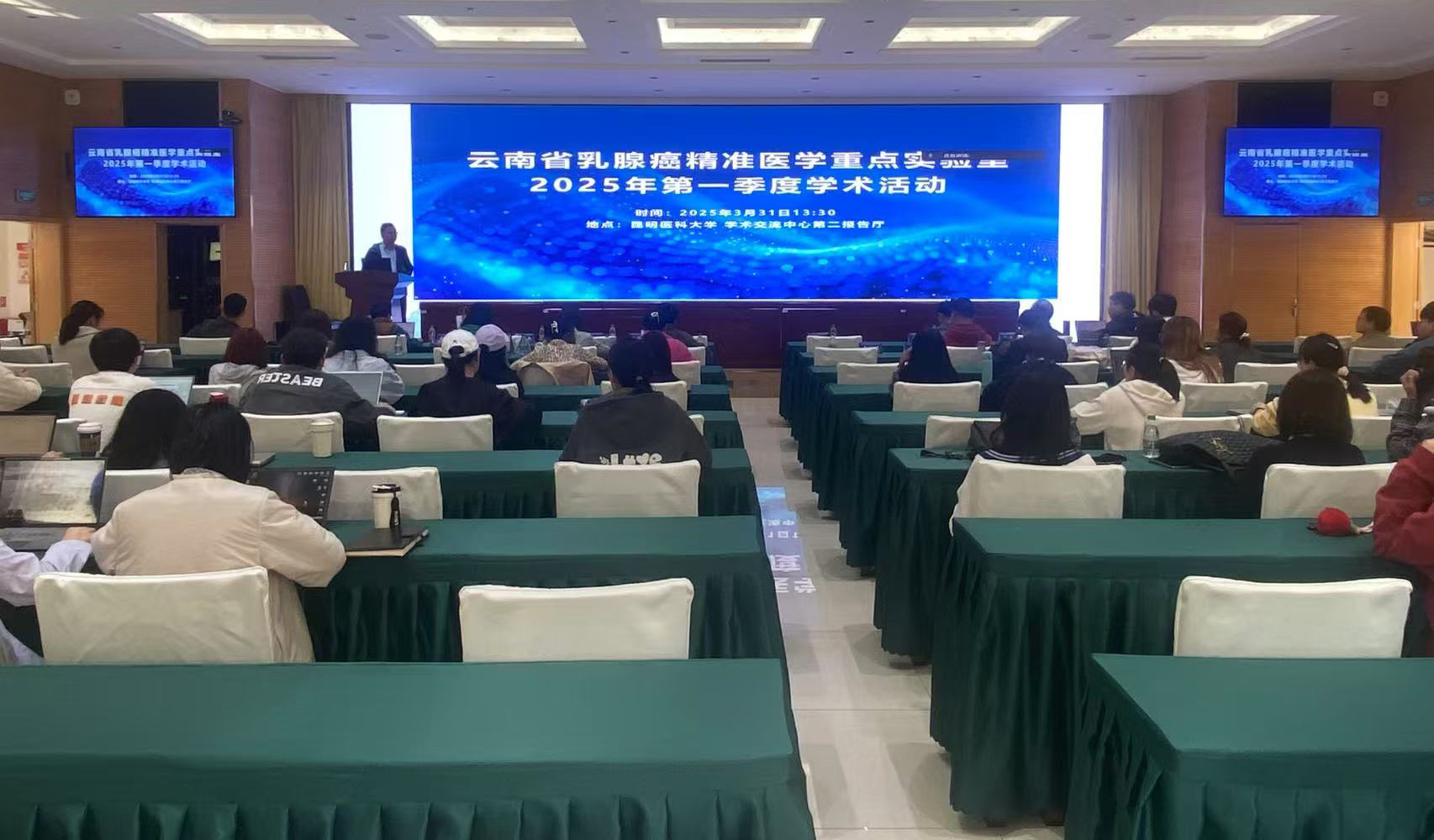 2025年3月31日,云南省乳腺癌精准医学重点实验室在beat365中文官方网站学术交流中心第二会议室成功举办了2025年第一季度学术活动。重点实验室主任陈策实、副主任李富兵、黄胜,beat365中文官方网站生物医学工程研究院副院长晏姗、陈亚娟,以及重点实验室学术委员会成员、研究方向负责人、科研骨干等70余人参加了此次活动。陈策实主任在致辞中强调,实验室全体成员应珍惜来之不易的平台,通过定期举办学术活动和PI例会,一方面促进团队成员之间的交流,另一方面定期讨论实验室建设与发展事宜,力争将实验室建设成为云南省一流的科研平台。