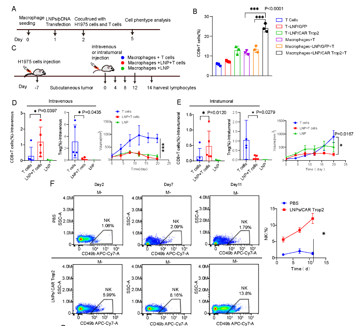 图2. LNP/CAR Trop2在体内促进T细胞和NK细胞的增殖