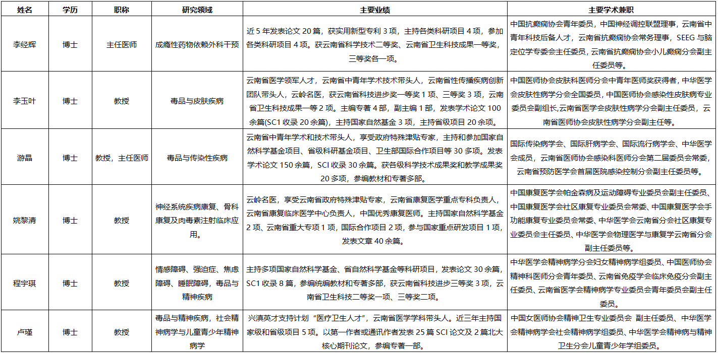 毒品依赖病理性记忆的形成和精确调控机制研究;寻找有效植源性药物进行作用靶点和机制研究;开展新纳入管制的毒品(如合成大麻素)相关人群研究;发展优化的吸毒人群心理行为干预手段;探究成瘾风险位点rs3743078及其下游调控基因PSMA4对甲基苯丙胺成瘾的调控作用,筛选干预药物并探究作用机制;伏隔核-内囊前肢-脑深部电刺激(NAc-ALIC-DBS)技术在甲基苯丙胺成瘾戒断后防复吸的临床研究。