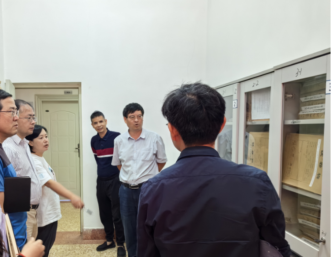 第一环节是现场资料检查。在药学楼504和509办公室,药学院党委书记张有福带领学院领导班子成员,对本科教育教学审核评估支撑材料、试卷、毕业论文以及其他纸质资料的规范归档情况进行检查,并现场指出存在的问题。