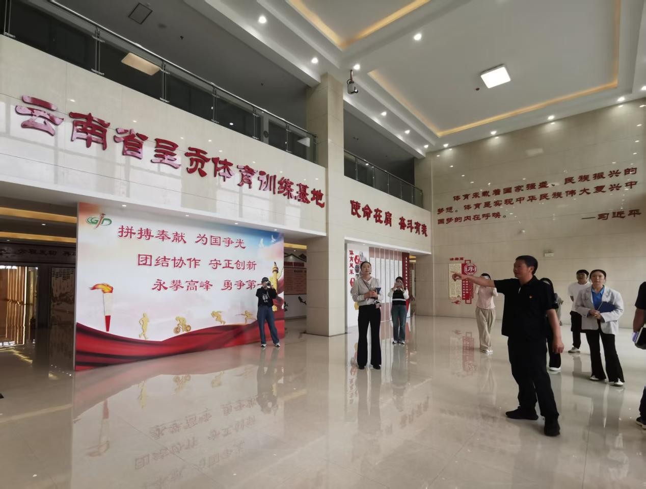 此次活动是呈贡区委组织部组织的“5+X”示范主题党日活动,“5”的部分包括重温入党誓词、学党章党规、学系列讲话精神、结合实际做等环节。在这一环节中党员们集中观看了视频《40金!有我!这光荣属于中国!》,倾听了马拉松冠军运动员董国建、杨绍辉同志分享体育健儿背后的故事以及他们所展现出的拼搏精神与党性修养的联系。本次活动的“X”是深入基地的训练场馆和场地,实地了解运动员们的日常训练。大家被运动员们顽强拼搏、团结协作、永不放弃的精神深深打动。
