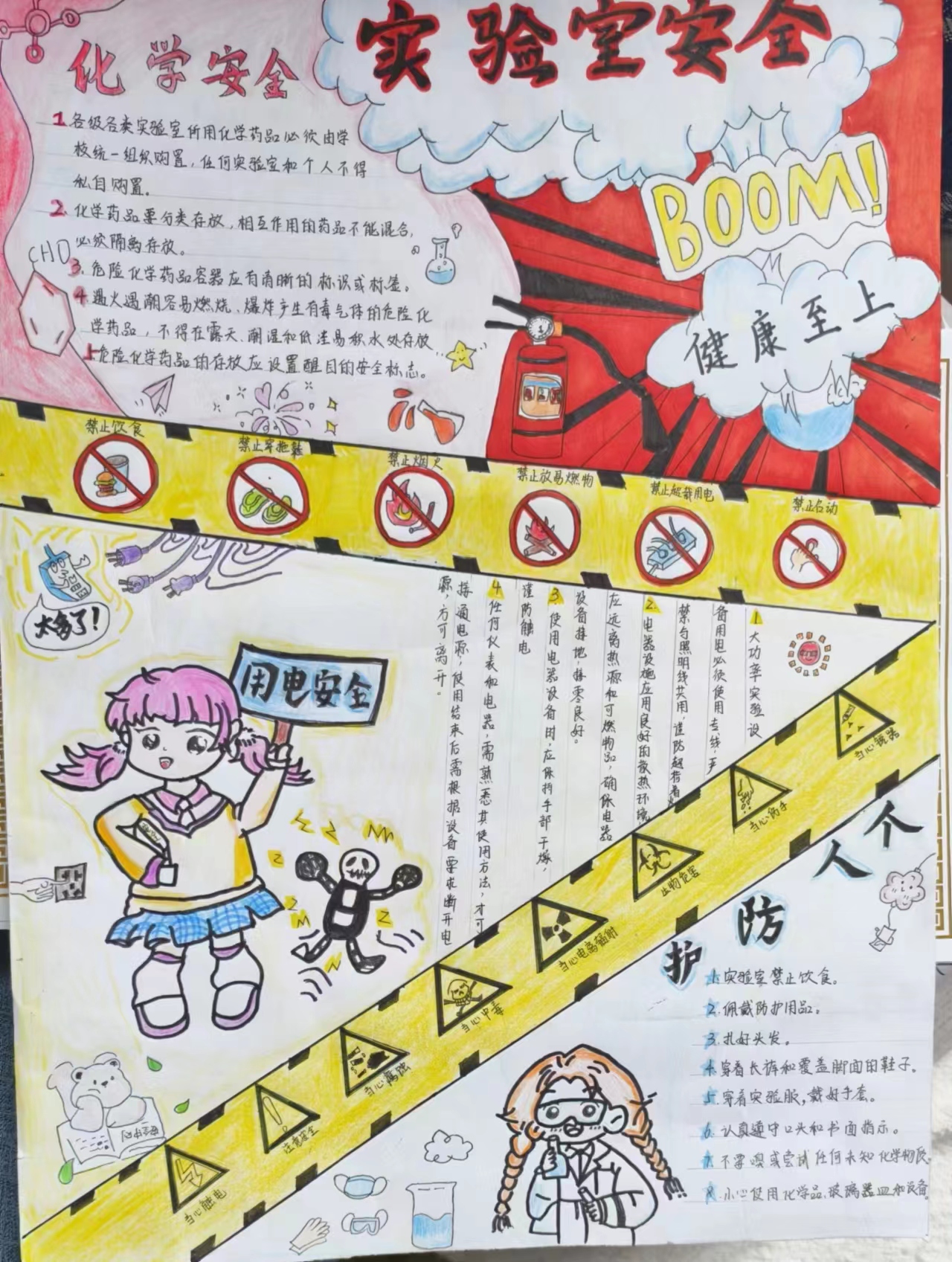 本次实验室安全科普绘画大赛以“安全教育,美育同行”为主题,自2024年3月20日至今,经过宣传动员、报名参赛、作品收集、学院评审等多个环节,最终评选出一等奖2名、二等奖3名、三等奖4名、最佳绘画奖和最佳主题奖各1名。