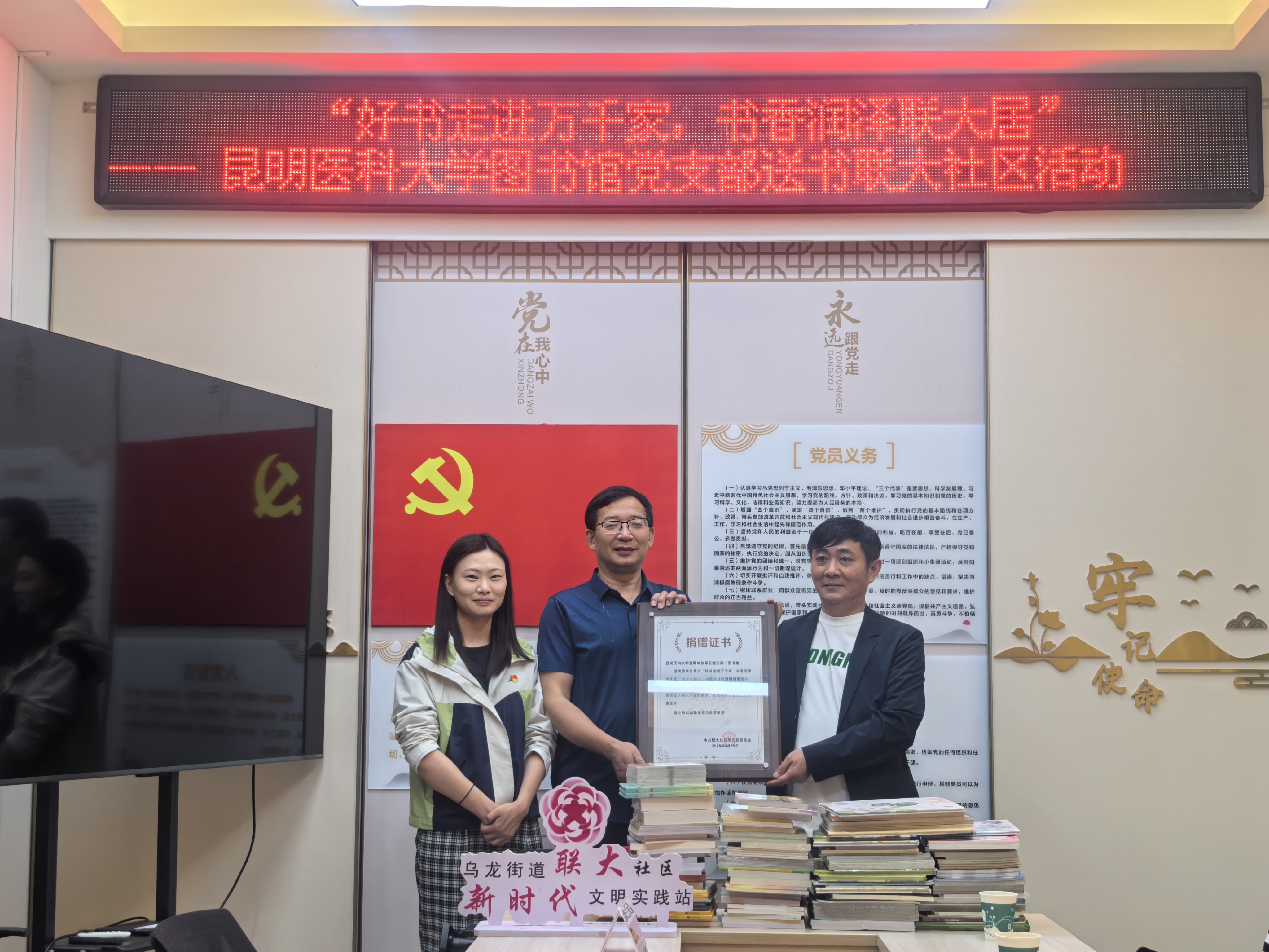 下午,图书馆教师代表前往天润康园联大社区党群服务驿站与联大社区党总支开展“好书走进万千家,书香润泽联大居”的共建联建主题党日活动,该活动系beat365中文官方网站第十五届读书节暨世界读书日系列活动之一。活动共有三项内容:一是联大社区党总支副书记肖雨薇与馆长张瑞宏就双方校地共建相关事宜进行座谈,乌龙街道党工委宣传委员樊娇就宣传工作谈了与图书馆的合作新思路;二是图书馆向联大社区捐赠图书;三是联大社区为图书馆颁发捐赠证书。此次活动不仅充实了社区书屋的馆藏,更让知识在邻里间流动传承,书香浸润着社区的每一个角落。