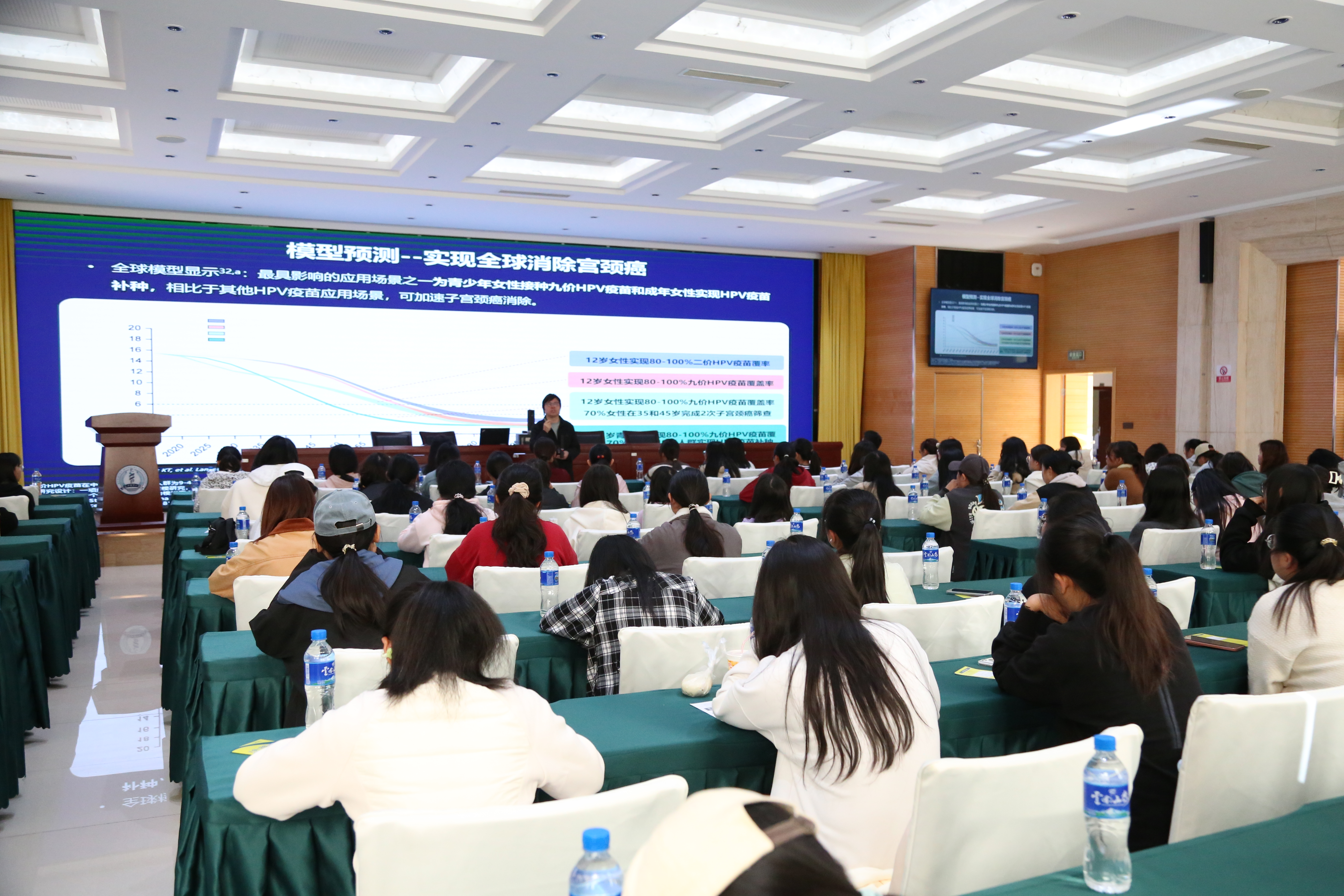 beat365中文官方网站分会场由公共卫生学院副教授焦锋主持,他围绕“青年学生性与生殖健康”这一主题开展专题讲座。焦锋用数据引入话题,深入讲解了生活技能训练和社会情感学习的重要性,向学生们普及了生殖健康的相关知识。此外,焦锋还与现场的同学们进行了互动交流,提高女大学生对自身健康的重视程度。