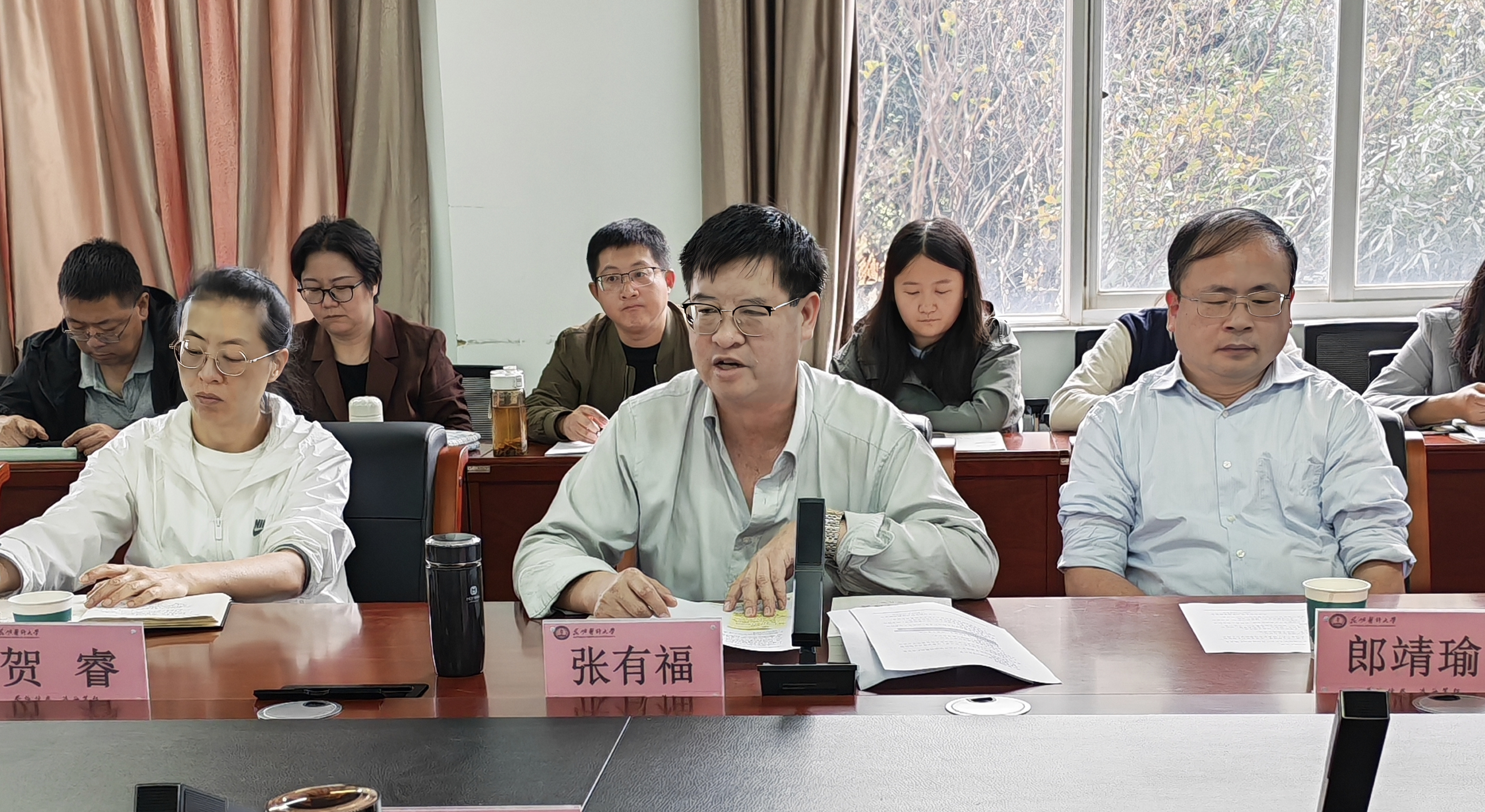 2025年10月15日,药学院党委理论学习中心组2025年第六次(扩大)学习在药学楼二楼会议室举行。学校党委常委、副校长殷建忠列席指导,基础医学院党委委员、副院长韩毅,基础医学院党委专职组织员李超列席会议,学院党委委员、非党院领导、中层干部参加学习。会议由药学院党委书记张有福主持。