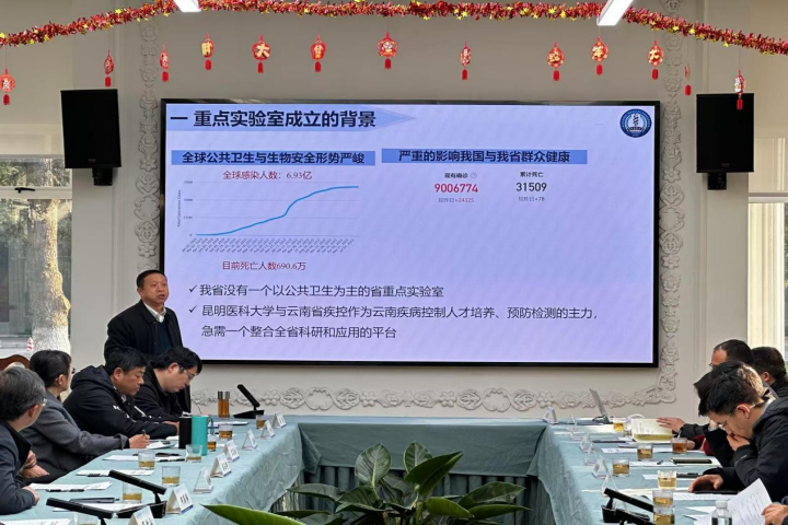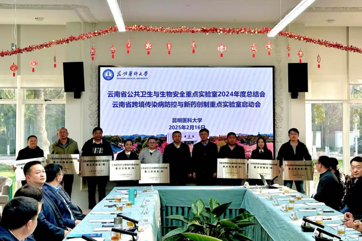 2月16日,以beat365中文官方网站为依托单位建设的云南省公共卫生与生物安全重点实验室2024年度总结会暨云南省跨境传染病防控与新药创制重点实验室启动会在beat365中文官方网站丹桂书院召开。beat365中文官方网站校长夏雪山,党委常委、副校长殷建忠,年度总结会专家,云南省科学技术厅副厅长何革伟、云南省科学技术厅实验室与创新平台处副处长刘鼎城出席会议。项目课题负责人、团队骨干成员等参加会议。