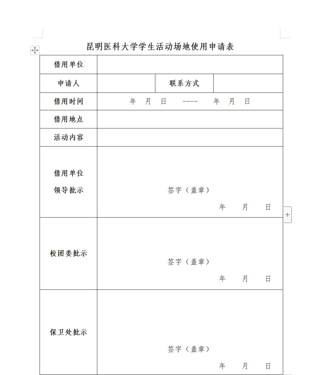 活动场地申请表