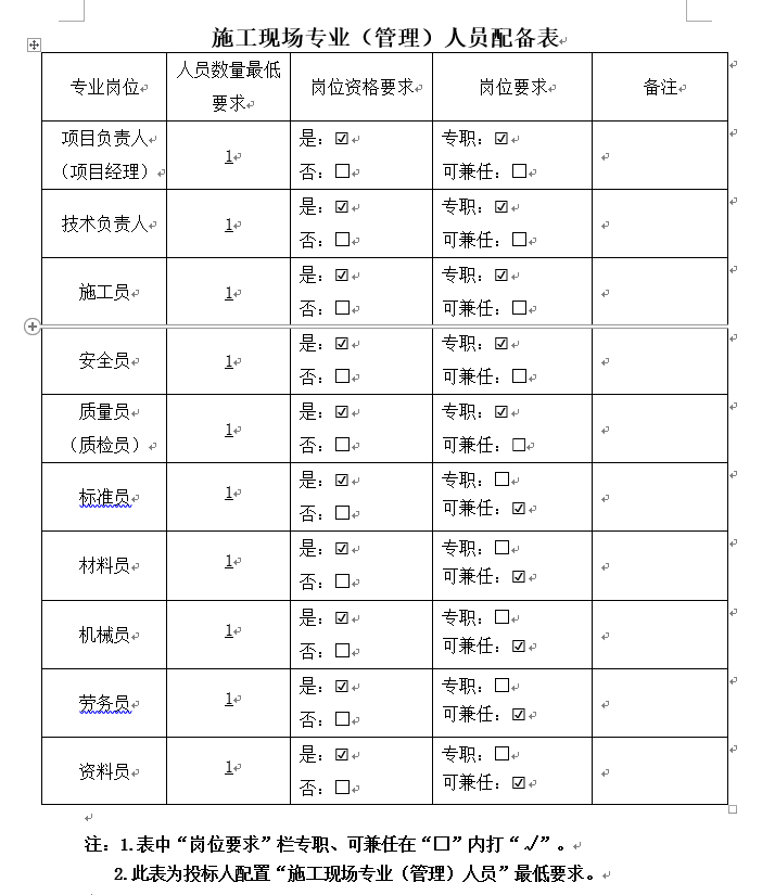 (3)人员要求:详见《施工现场专业(管理)人员配备表》。