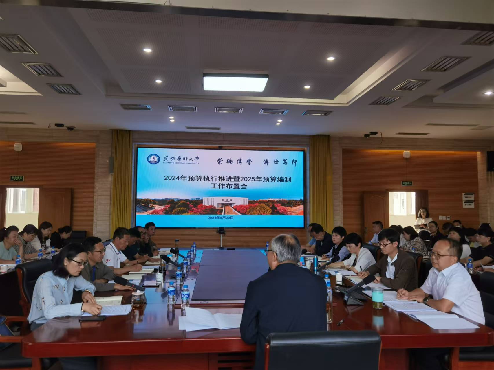 9月20日上午,beat365中文官方网站2024年预算执行推进暨2025年预算编制工作布置会在呈贡校区召开。学校党委委员、副校长吴红明出席会议,各单位、部门、学院主要负责人及预算编制人员,财务处相关人员参加会议。