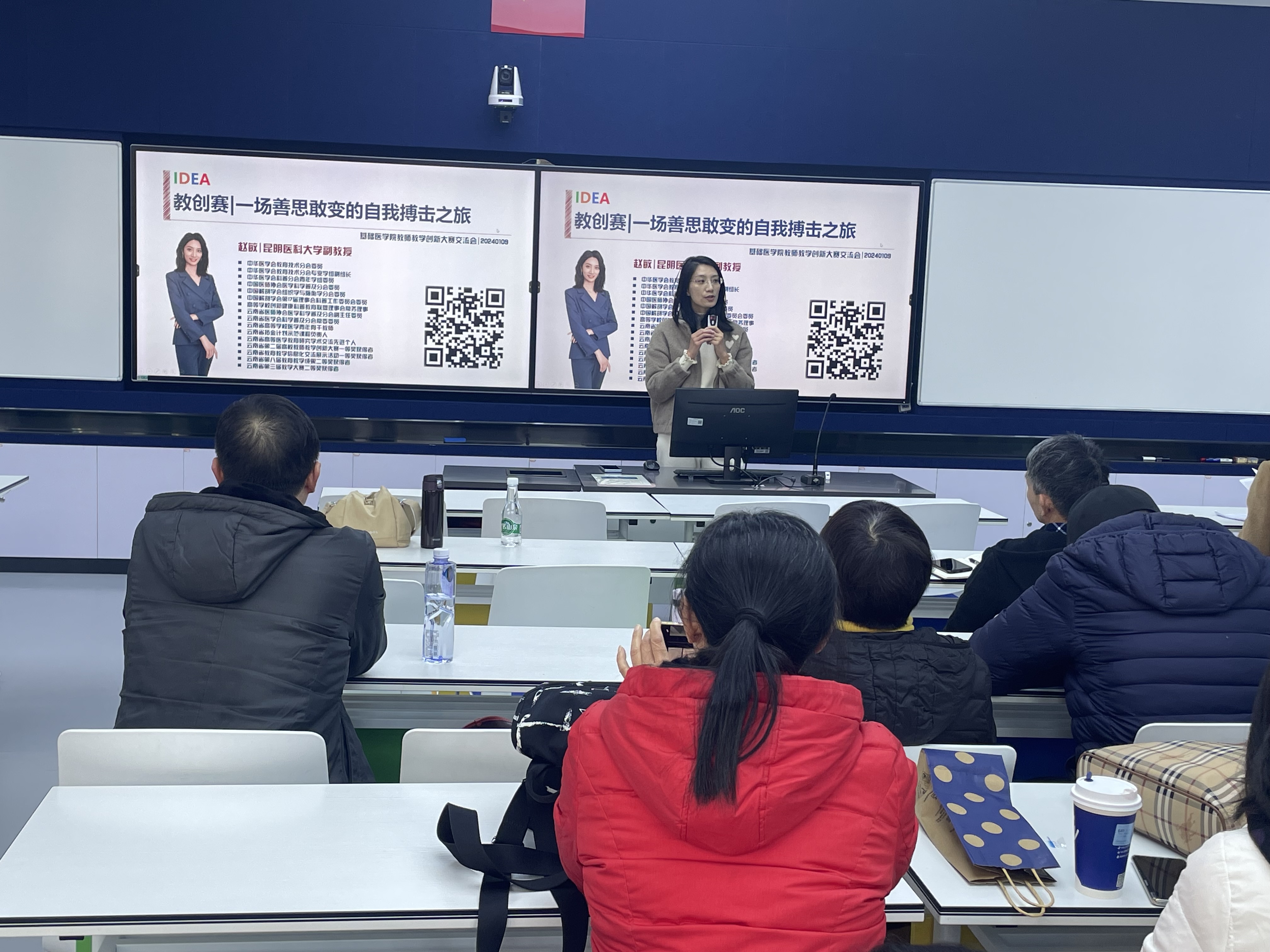 为推动学校教育教学改革,有效助力学校课程思政建设和新医科建设,推动信息技术与高等教育教学创新发展,提高产教协同育人成效,基础医学院于2024年1月9日在呈贡校区西苑3号教学楼3401教室举办了教师教学创新大赛交流会。会议邀请获得云南省高校教师教学大赛一等奖的赵敏、董俊杰、龙莉三位老师做经验交流,学院各系、中心30余名教师参加了交流会,会议由学院副院长邹英鹰主持。