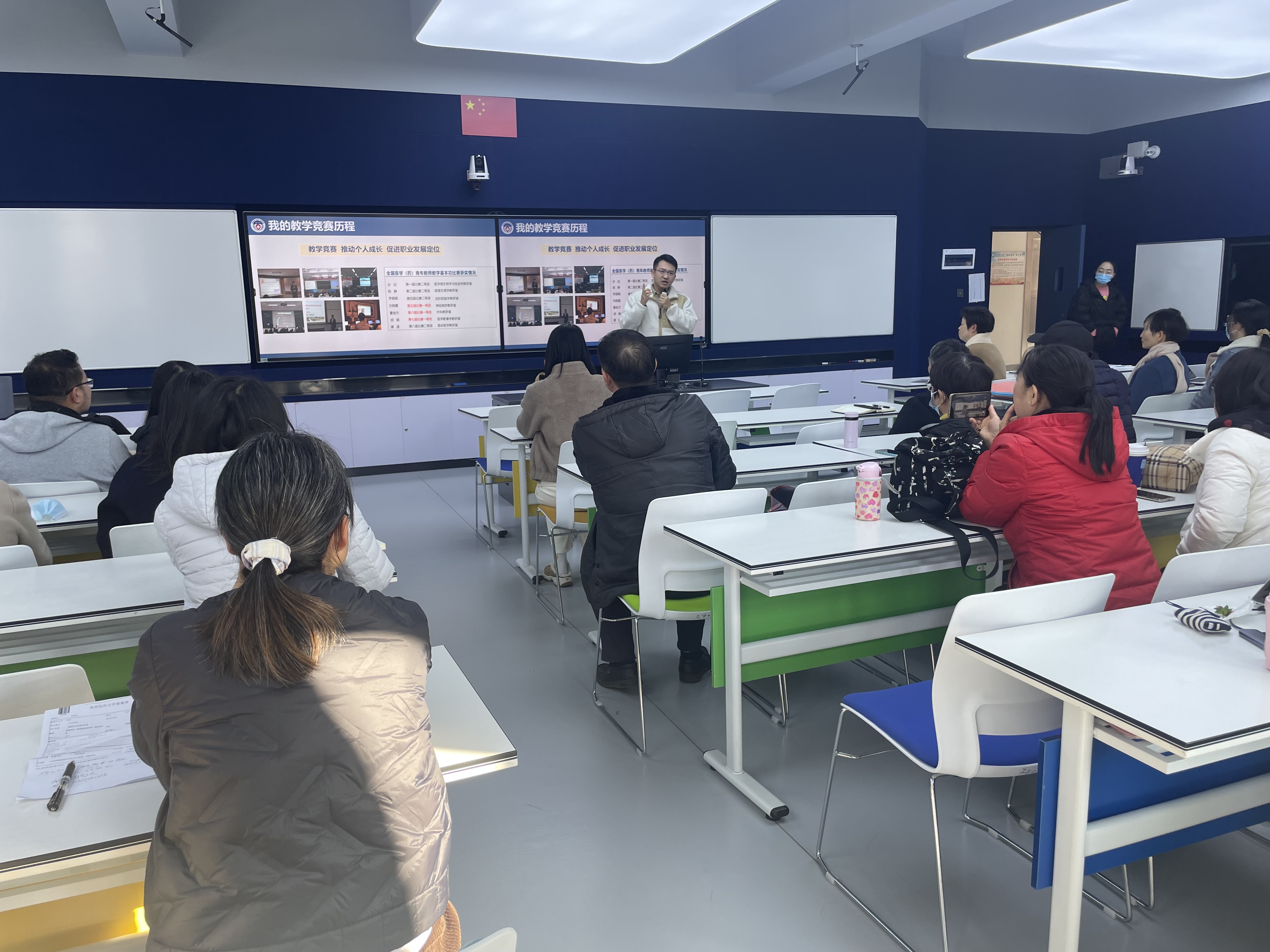 龙莉老师从参赛者和评审两个角度出发,为大家分享了教师教学创新大赛的参赛要求、课堂教学实录视频和创新成果报告的注意要点等。