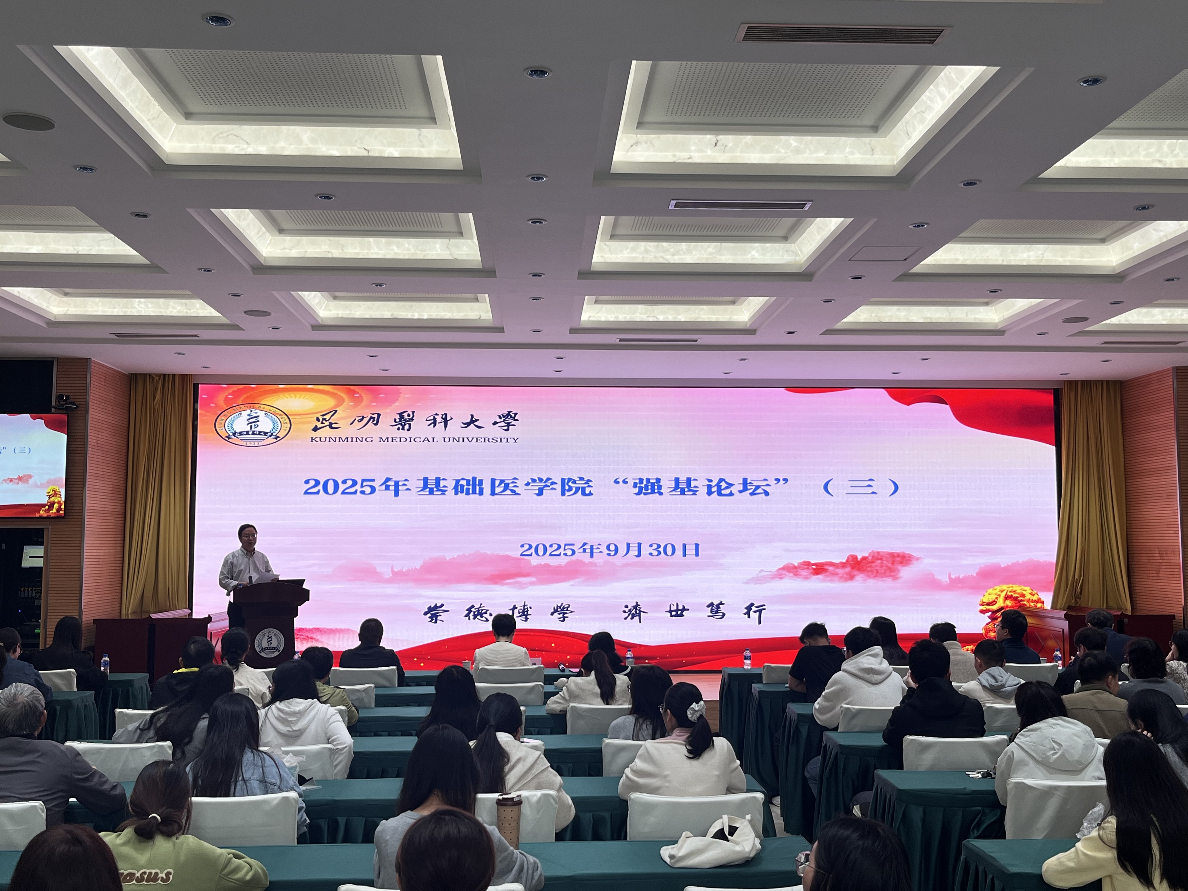 2025年9月20日,beat365中文官方网站基础医学院成功举办2025年强基论坛(三)。本次论坛由生物医学工程研究院院长陈策实与基础医学院副院长邹英鹰共同主持,全校教师代表、基础医学院在昆研究生及本科生代表参会,围绕医学领域关键科学问题,共话前沿研究成果与未来发展方向。