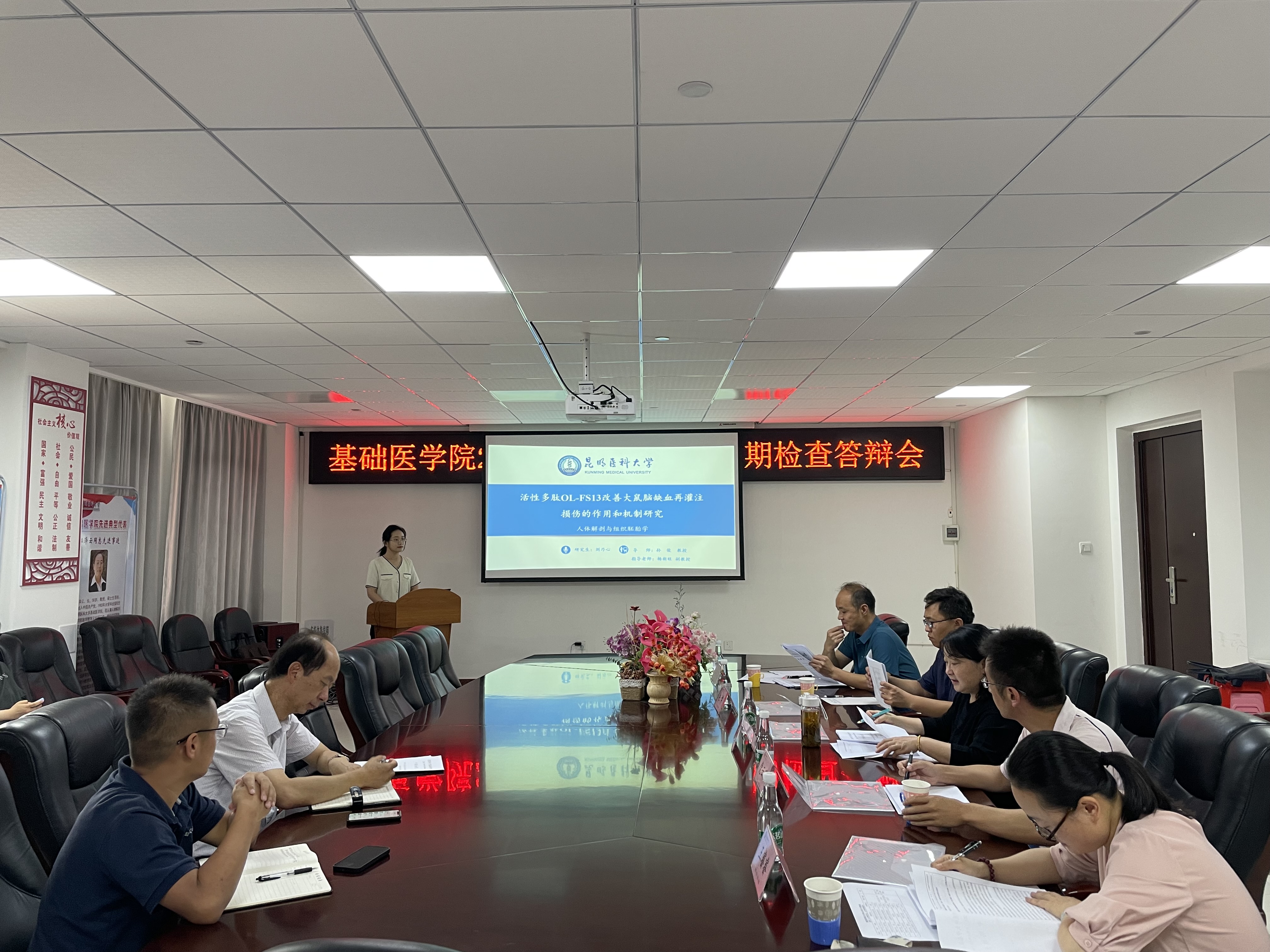基础医学院于8月23日全天开展2022年博士研究生集中开题及中期检查答辩工作,来自云南大学、昆明理工大学、云南师范大学、云南中医药大学及中国科学院昆明动物研究所的10名专家组成两个小组,分别对我院2021级和2020级博士研究生课题进行检查。