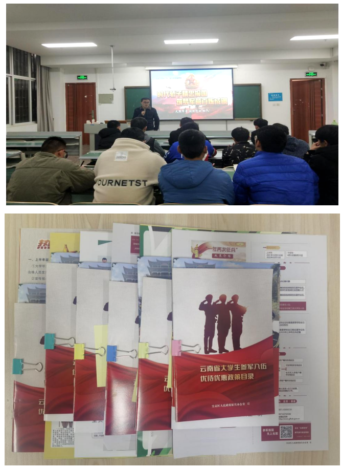 为提高我院本科应届毕业生参军入伍、报效祖国的意识,帮助同学们全面了解预征信息和参军入伍相关政策,2021年12月21日,基础医学院在我校平政校区组织召开毕业生征兵政策宣讲会。此次选举会由基础医学院武装模块负责人李超老师主讲,辅导员赖婷婷及2018级信息管理与信息系统班全体男生参加。