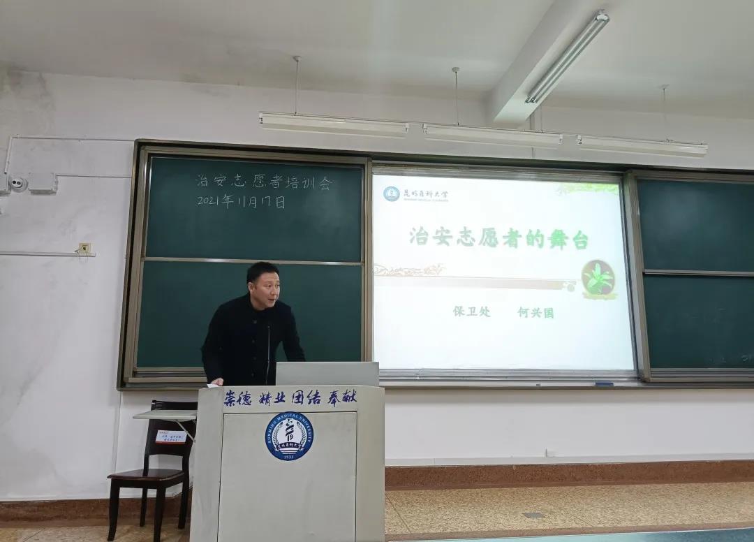 2021年11月17日晚19:00,beat365中文官方网站基础医学院治安志愿者培训大会在呈贡校区教学楼6403成功举办。此次培训邀请了我校保卫处治安科科长何兴国老师作为主讲,基础医学院管琳娜副院长、辅导员武星琪老师以及全体治安志愿者参与此次培训。