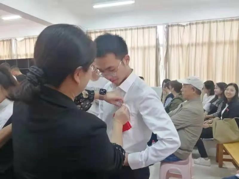 入党宣誓仪式在全体奏唱《国际歌》中开始,基础医学院党委副书记彭文彬宣读51位预备党员名单,由龙榕同志领誓,在场的全体党员举起右手,面对党旗预备党员庄严宣誓:“我志愿加入中国共产党,拥护党的纲领,遵守党的章程,履行党员义务,执行党的决定,严守党的纪律,保守党的秘密,对党忠诚,积极工作,为共产主义事业奋斗终身,随时准备为党和人民牺牲一切,永不叛党。” 铿锵誓言声,表达着党员坚定不移的入党信念。党委为预备党员颁发党费证,党委委员、党支部书记或入党介绍人为预备党员佩戴象征着信仰、使命与担当的党徽。