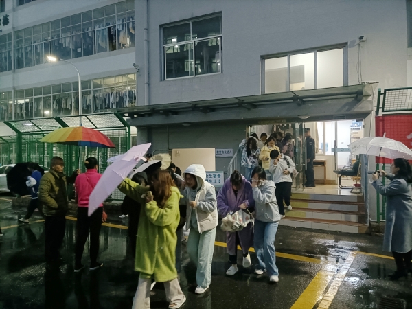 18:30,随着消防警报声响起,消防广播发出火灾报警信号,灭火行动组第一时间赶赴现场,展开人员搜救和灭火行动。博敏园2栋、3栋学生宿舍各楼层老师迅速组织本楼层学生有序地从最近的楼梯口向下疏散,同学们按照规定路线和逃生疏散技巧,用湿毛巾捂住口鼻、弯腰低姿、快速有序地撤离宿舍,前往指定地点集合,整个疏散演练活动历时2分50秒。疏散演练由平政校区管委会吴美芸主任主持,保卫处副处长何兴国对本次消防逃生演练活动进行点评。通过这次消防应急疏散演练活动,不仅增强了师生的消防安全意识,也进一步提高了师生在火灾发生时对火灾的应变能力,为预防秋冬季校园火灾的发生,促进平安稳定校园发挥了积极作用。