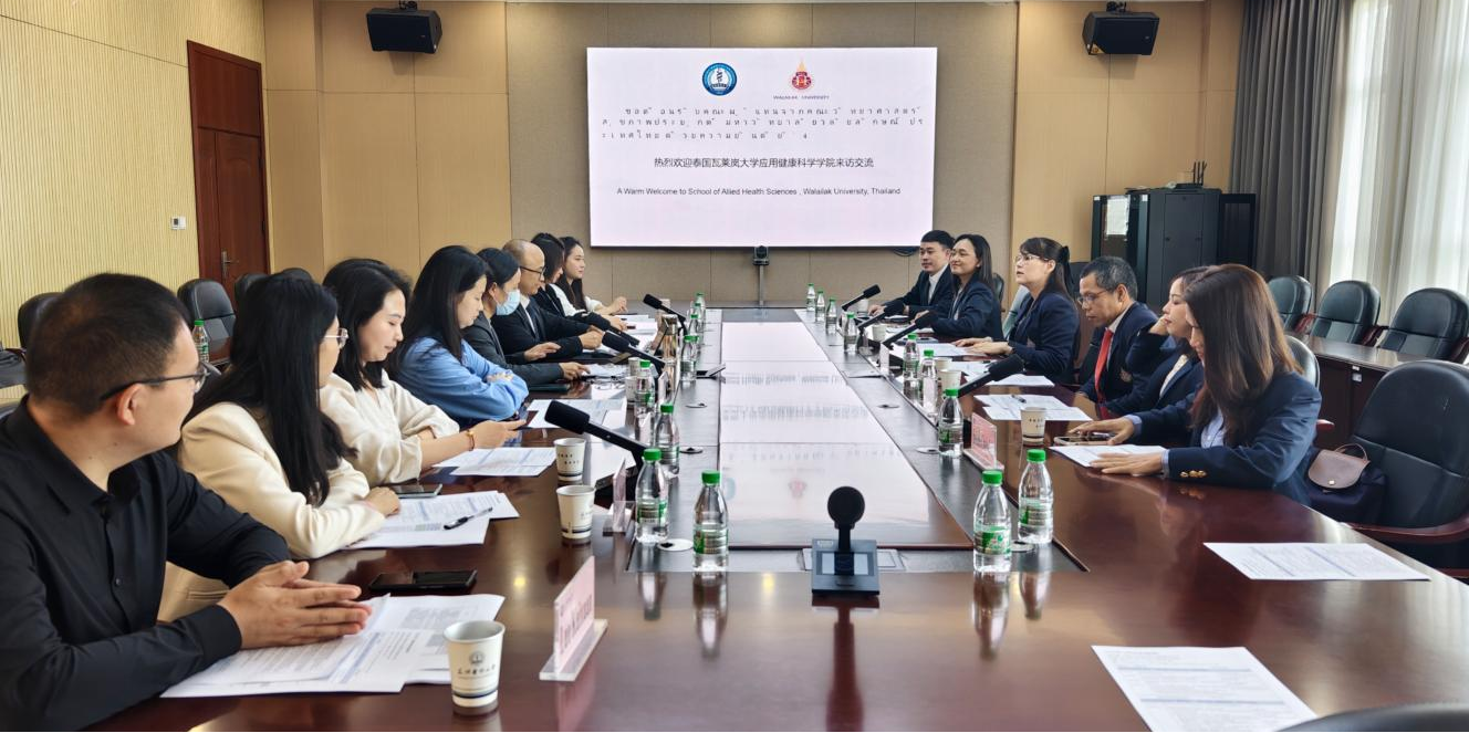 4月28日beat365中文官方网站康复学院、生命科学与检验医学学院与泰国瓦莱岚大学联合健康科学学院举行合作交流会议。