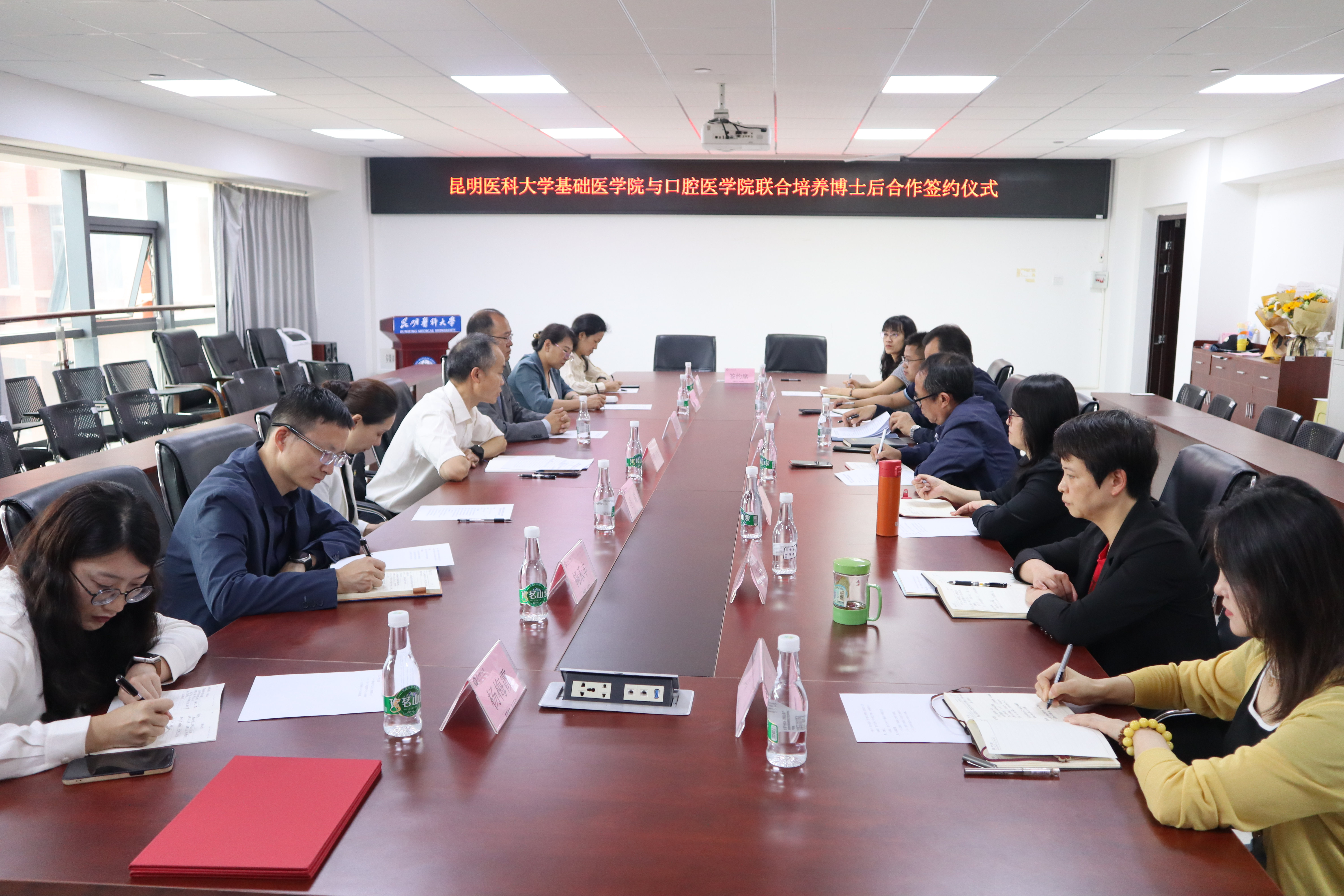 7月2日,beat365中文官方网站基础医学院与口腔医学院联合培养博士后合作签约仪式在基础医学楼614会议室举行,基础医学院党政领导、口腔医学院党政领导、云南省口腔医学重点实验室负责人和两个学院办公室相关负责人出席签约仪式。