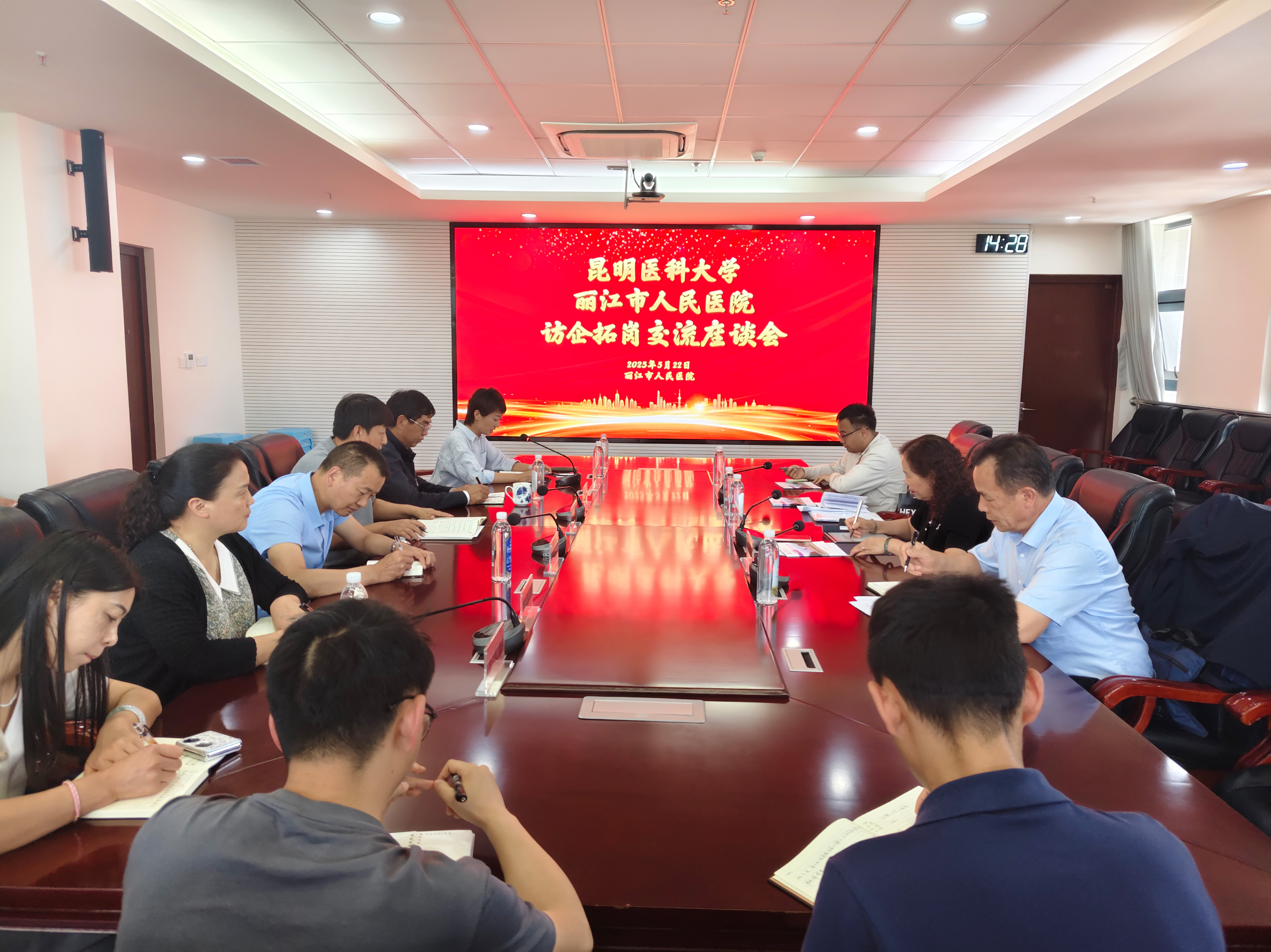 5月22日,在丽江市人民政府的大力支持下,beat365中文官方网站副校长张洪波一行与丽江市卫生健康委员会、市人力资源社会保障局及相关医疗卫生机构举行访企拓岗交流座谈会。丽江市人民政府副秘书长习媛贞主持座谈会,张洪波副校长介绍了学校学科建设、专业特色、人才培养模式等方面的优势,并表示希望以此次访企拓岗为契机,在人才培养、科研项目合作等方面与丽江市各医疗单位建立稳定合作关系,为丽江市医疗卫生事业和健康产业发展输送更多优秀医学人才。丽江市各医疗用人单位对学校的人才培养质量给予高度评价,希望能进一步加强合作,吸引更多医科大学毕业生投身丽江医疗健康事业。