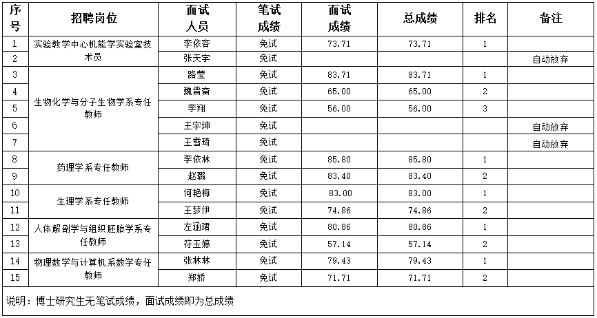 基础医学院2024年第一批公开招聘博士工作人员面试评分及汇总表