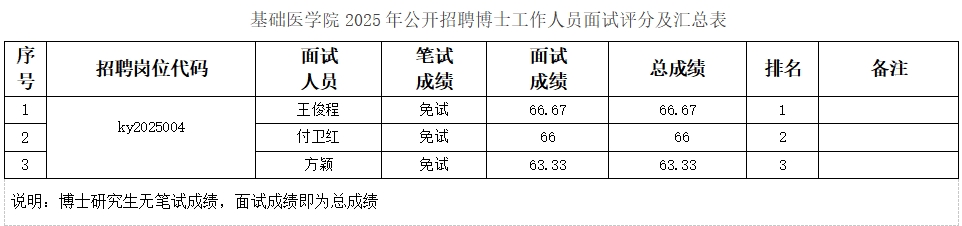 按照beat365中文官方网站2025年公开招聘人员面试考核工作的相关要求,我院于2025年5月7日对公开招聘博士工作人员进入面试人员进行了面试考察,本着公平、公正、择优录用的原则,进行了试讲以及综合素质面试,现将基础医学院2025年公开招聘博士工作人员面试考核结果予以公示。