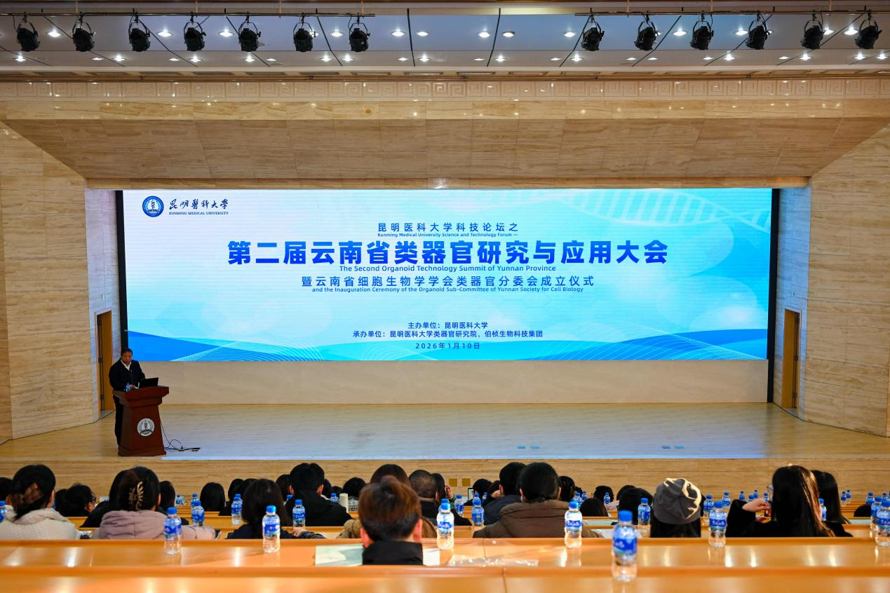 2026年1月10日,第二届云南省类器官研究与应用大会暨云南省细胞生物学学会类器官分委会成立仪式在beat365中文官方网站学术交流中心圆满落幕。本次会议由beat365中文官方网站主办,beat365中文官方网站类器官研究院与伯桢生物承办,beat365中文官方网站校长夏雪山任大会主席,beat365中文官方网站类器官研究院院长赵冰教授主持和统筹会议。来自全国各地高校、科研院所及生物医药企业的百余位专家学者齐聚春城,共同围绕类器官领域的前沿理论、技术创新与临床应用展开深入交流与探讨,共谋学科发展新方向,助力科研成果转化与产业升级。