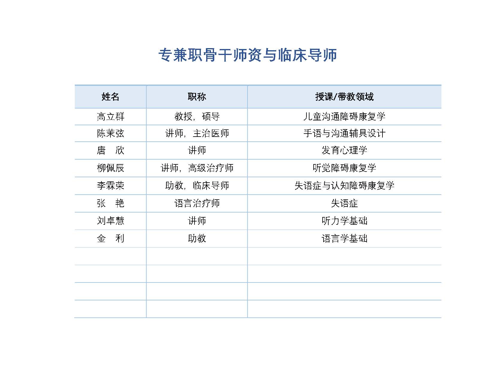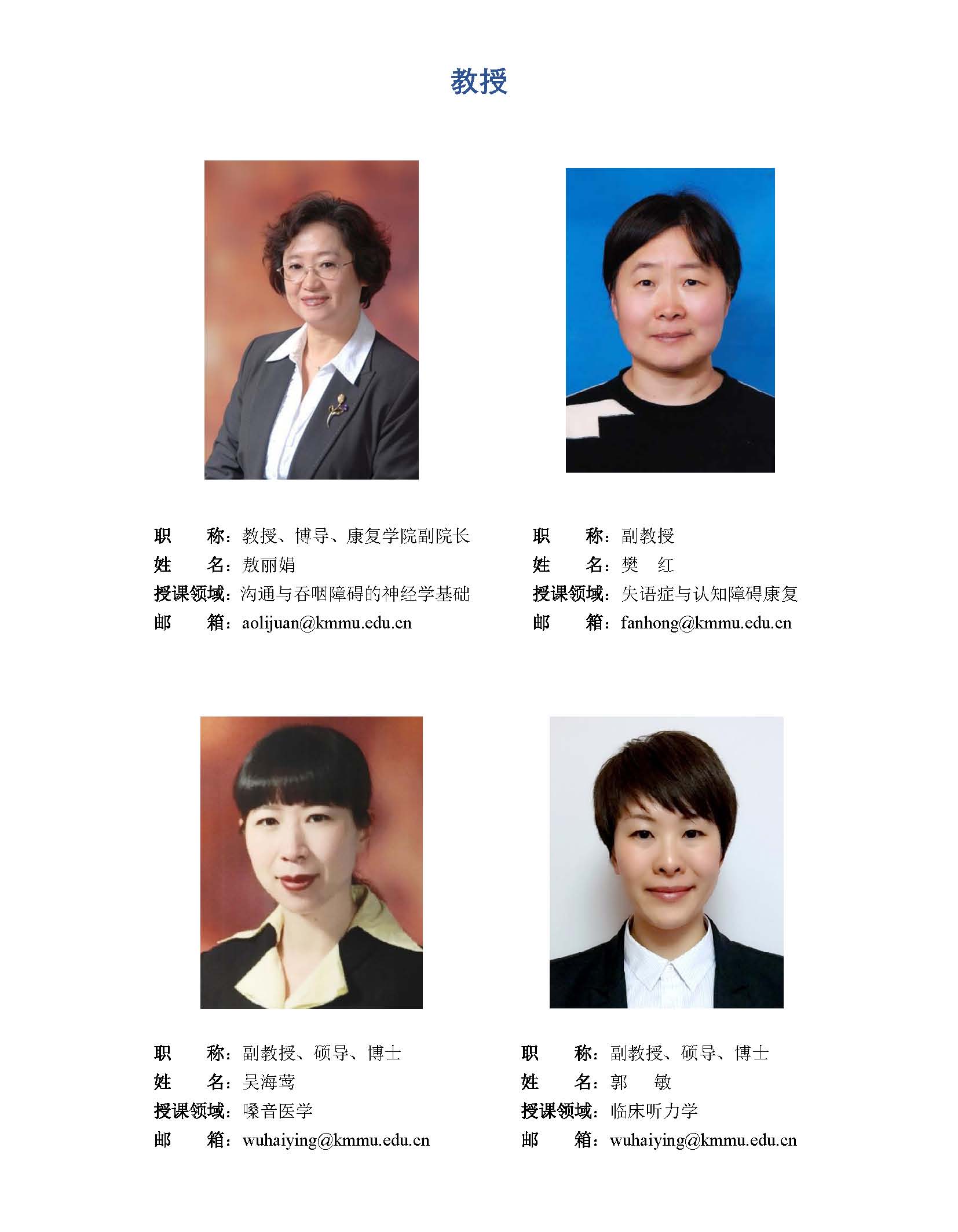 听力与语言病理学系师资队伍