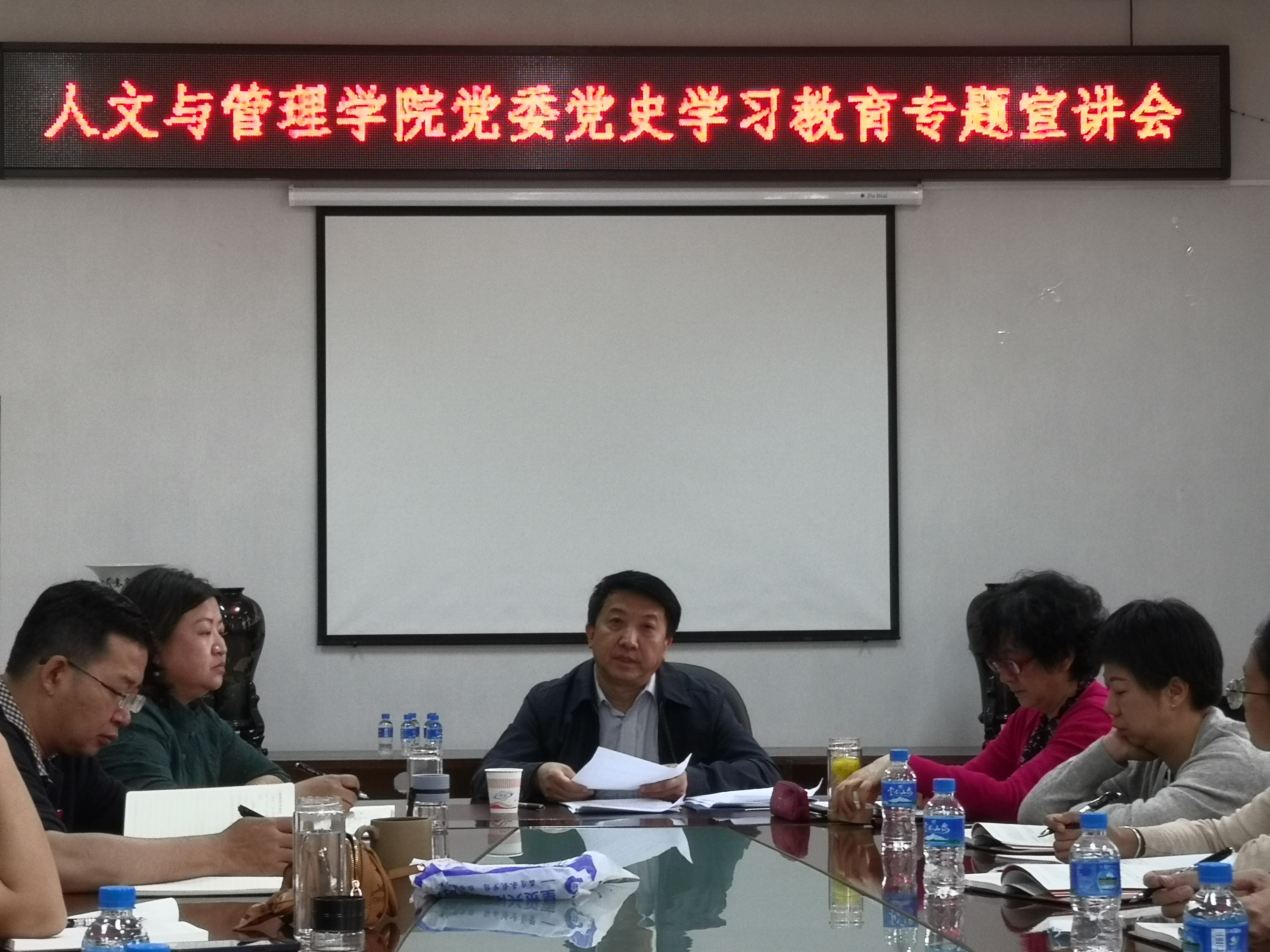 4月30日上午,beat365中文官方网站党史学习教育宣讲团副团长、党委副书记李世碧到人文与管理学院开展党史专题宣讲。