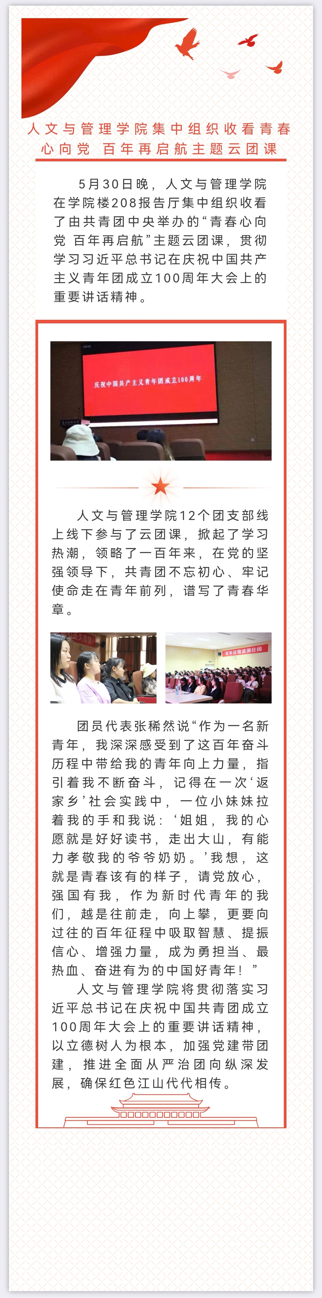 人文与管理学院集中组织收看青春心向党百年再启航主题云团课