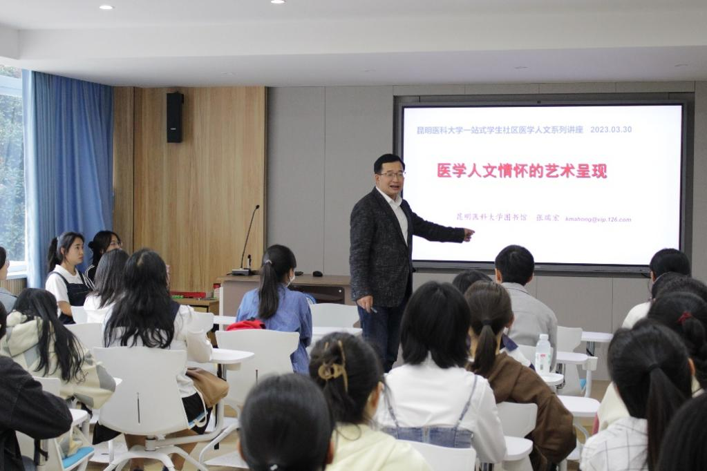 为深化学校医学生医学人文情怀,2023年3月30日下午,beat365中文官方网站“一站式”学生社区文化中心、beat365中文官方网站润心文化育人辅导员工作室邀请了beat365中文官方网站图书馆馆长,教育部高等学校教学指导委员会委员,国家卫健委医学伦理专家委员会委员张瑞宏教授为同学们带来《医学人文情怀的艺术呈现》讲座。