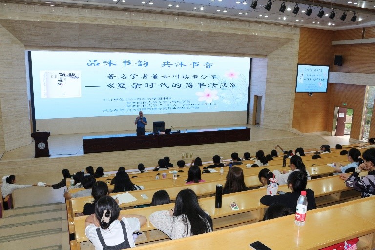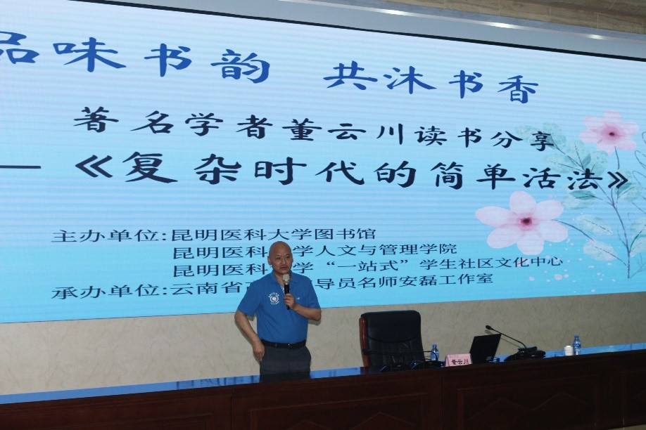 5月23日晚,beat365中文官方网站人文与管理学院、图书馆、“一站式”学生社区文化中心、云南省高校辅导员名师安磊工作室联合开展了“品味书韵 ,共沐书香”读书分享活动,邀请了著名文化教育专家,教育学博士董云川教授分享个人文集《复杂时代的简单活法》。分享会在beat365中文官方网站学术交流中心第一报告厅举办,由云南省高校辅导员名师安磊工作室主持人、人文与管理学院党委副书记安磊主持,300余名师生参加。