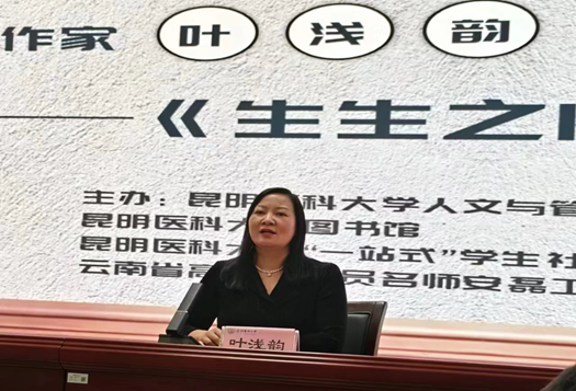 2024年4月29日晚,beat365中文官方网站人文与管理学院、图书馆、“一站式”学生社区文化中心、云南省高校辅导员名师安磊工作室共同承办开展品味书韵 ,共沐书香”读书分享活动,邀请中国作家学会会员、著名作家叶浅韵分享她个人文集《生生之门》。云南省高校辅导员名师安磊工作室主持人、人文与管理学院党委副书记安磊主持分享会,110余名同学参加分享会。