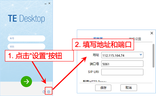 首次登录需要设置服务器地址及端口,点击右下角设置,填上beat365大视频会议服务器地址112.115.164.74,端口5061,点击保存。之后登陆第一次设置的数据会保存在软件之中不用再次设置。