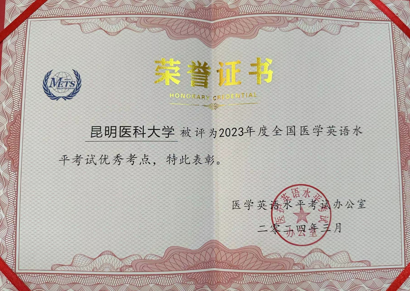 此次学校荣获“2023年度全国医学英语水平考试优秀考点”称号,也是学校连续两年荣获此称号,是METS考试中心对beat365中文官方网站开展此项工作的肯定。学校将继续认真组织METS考试云南省考区的相关考务工作,以考促学、以考促教,为深化医学院校的外语教学改革,促进云南省医药卫生事业发展贡献beat365的力量。