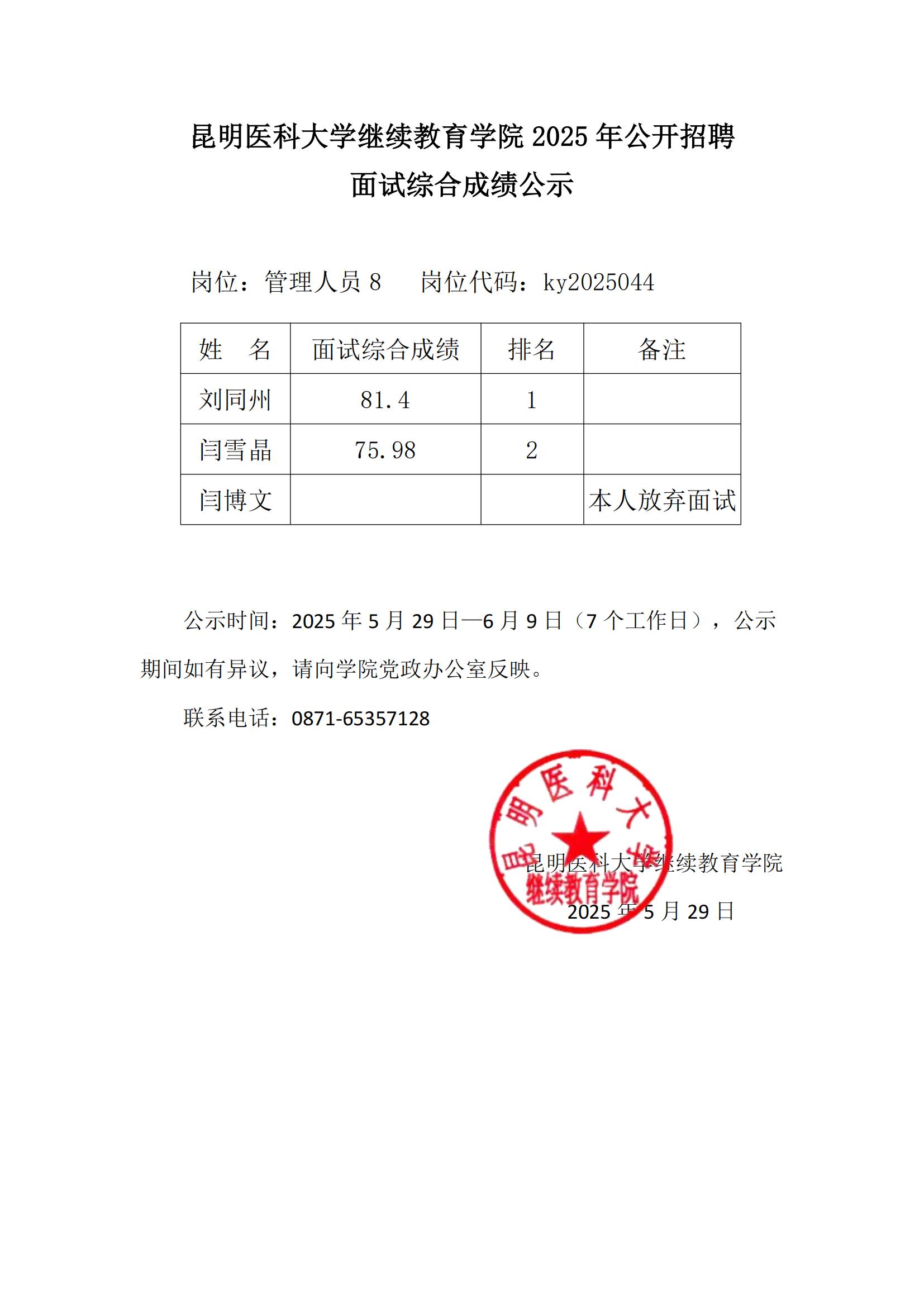 beat365中文官方网站继续教育学院2025年公开招聘面试综合成绩公示