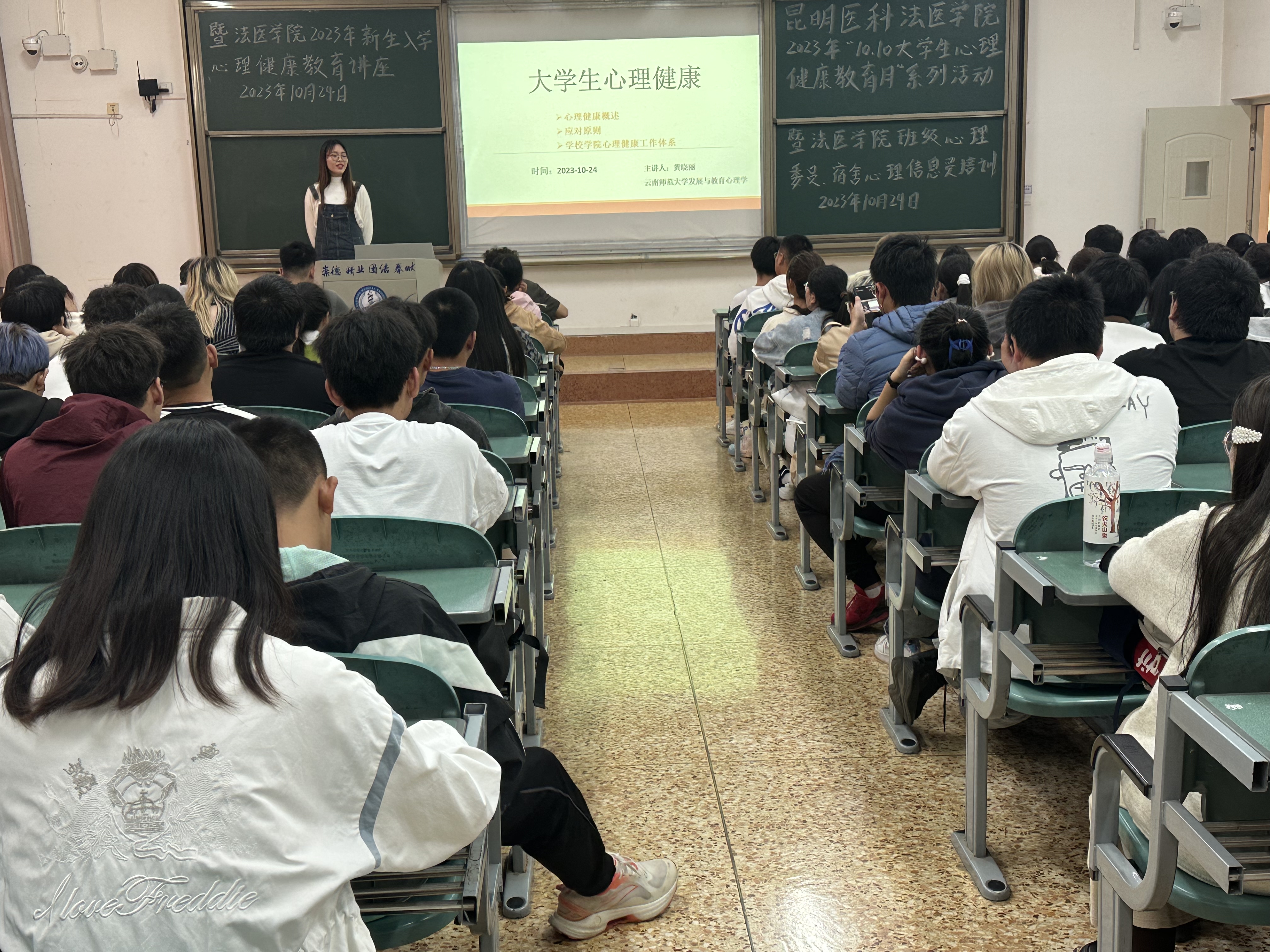 为进一步营造法医学院心理健康教育工作的良好氛围,提升心理育人质量,加强对学院心理工作站及心理委员队伍建设,根据《beat365中文官方网站关于开展2023年“10?10大学生心理健康教育月”活动的通知》要求及工作实际,法医学院于2023年10月24日在教学楼1109教室开展了班级心理委员、宿舍信息员“心理健康教育工作”专题培训,培训主讲人为学校心理咨询中心心理协助员黄晓丽老师,学院党委副书记卢蓉、团委书记申莹及呈贡校区各班心理委员、信息员共150余人参加培训。