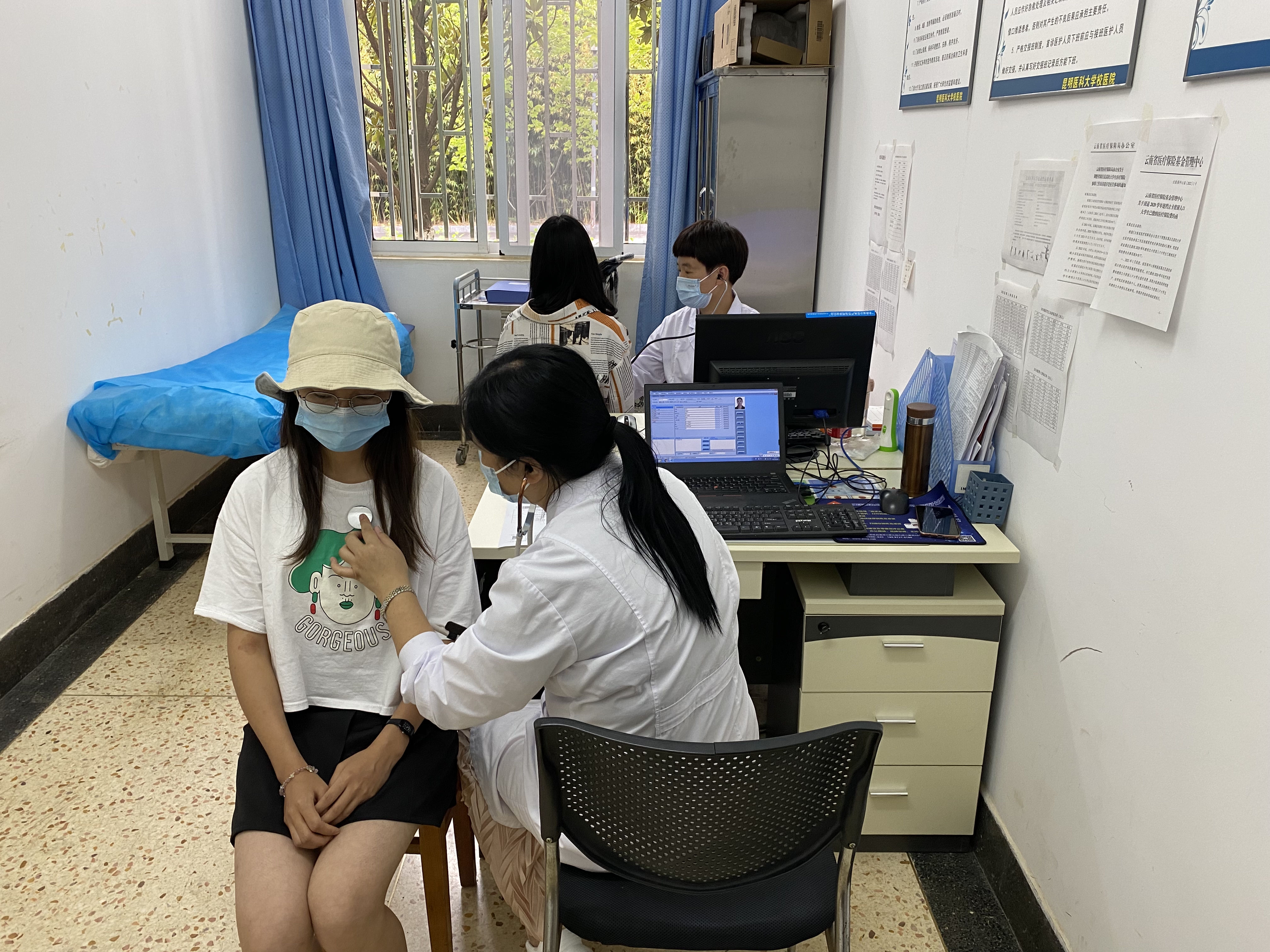 校医院全体医务人员热情、耐心、细致的给每一位同学做检查,并对体检的结果做了认真、详细登记记录,对体检异常同学给予立即追踪观察;在保证体检质量的同时,医院疫情防控工作不松懈,体检中要求同学都佩戴好口罩,做好个人防护,保持了一定的安全距离。