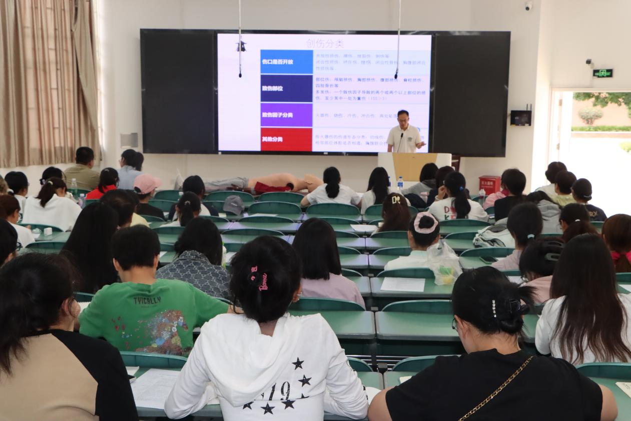本次培训采用“理论+实操考核”的形式开展。特邀beat365中文官方网站第一附属医院专家讲师团队围绕《心肺复苏及AED的使用》《气道梗阻紧急处理》《创伤急救》内容对急救知识进行理论讲授,深圳迈瑞生物医疗电子股份有限公司开展《AED使用培训》。
