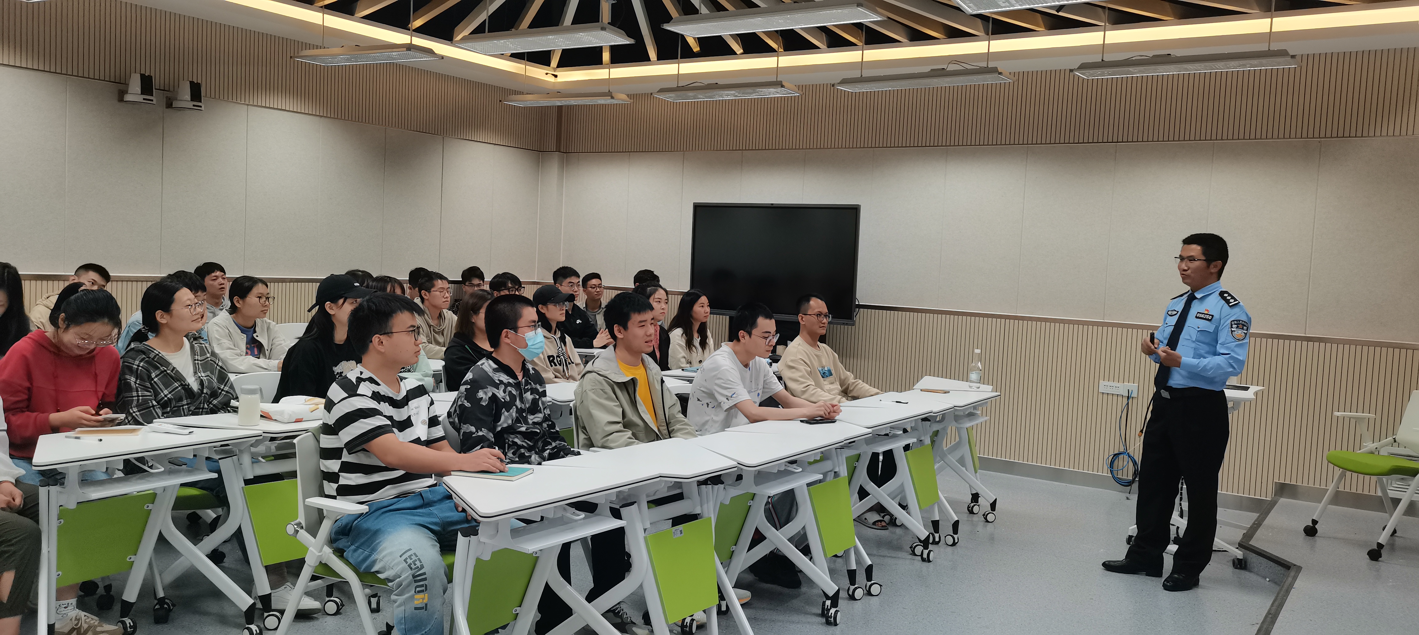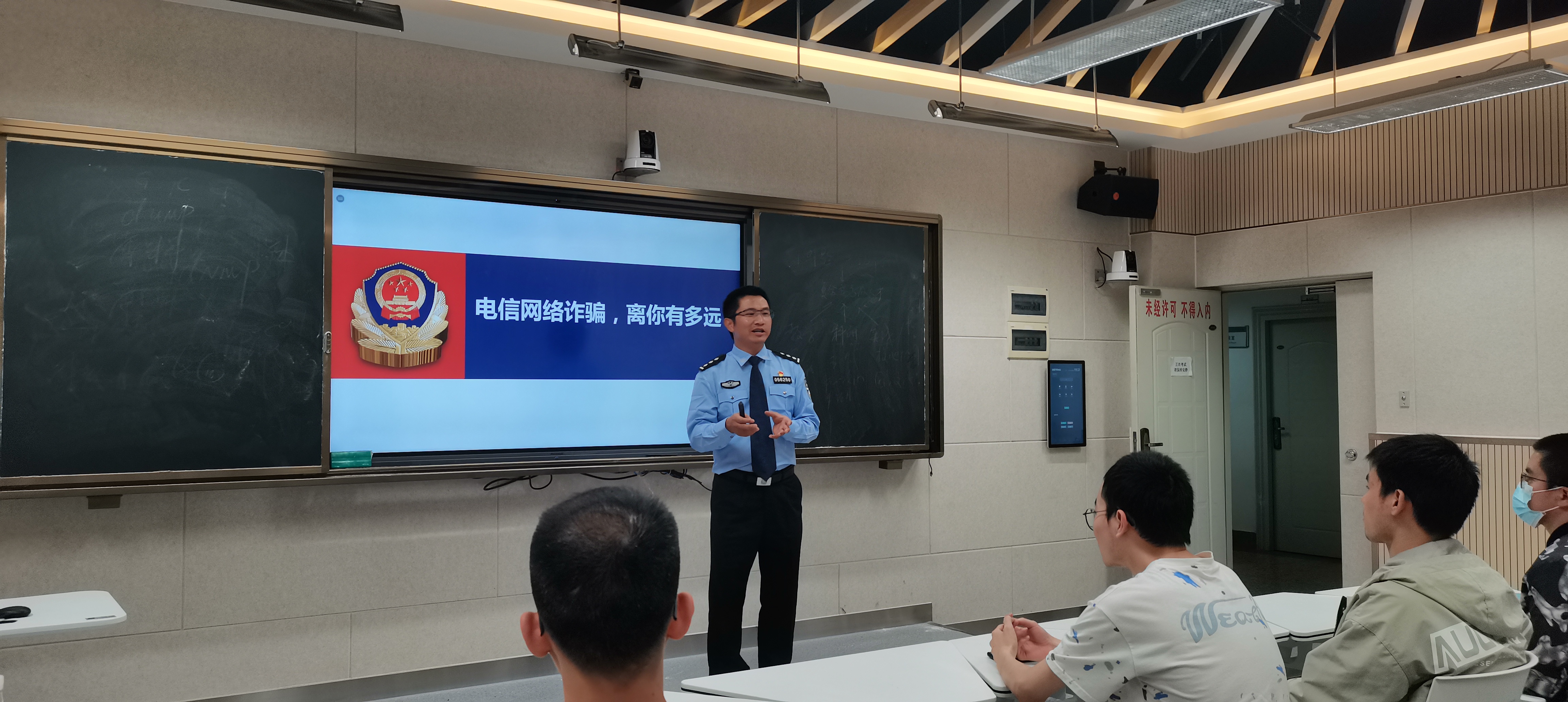 本次讲座由昆明市公安局呈贡公安分局刑侦大队副大队长刘文贤主讲,刘警官结合自己的办案经历,介绍了各种诈骗手段和方式,剖析了诈骗分子和受害者的心理,给同学们上了一堂生动的“反电诈”普法课,增强了同学们防范电信诈骗的意识。