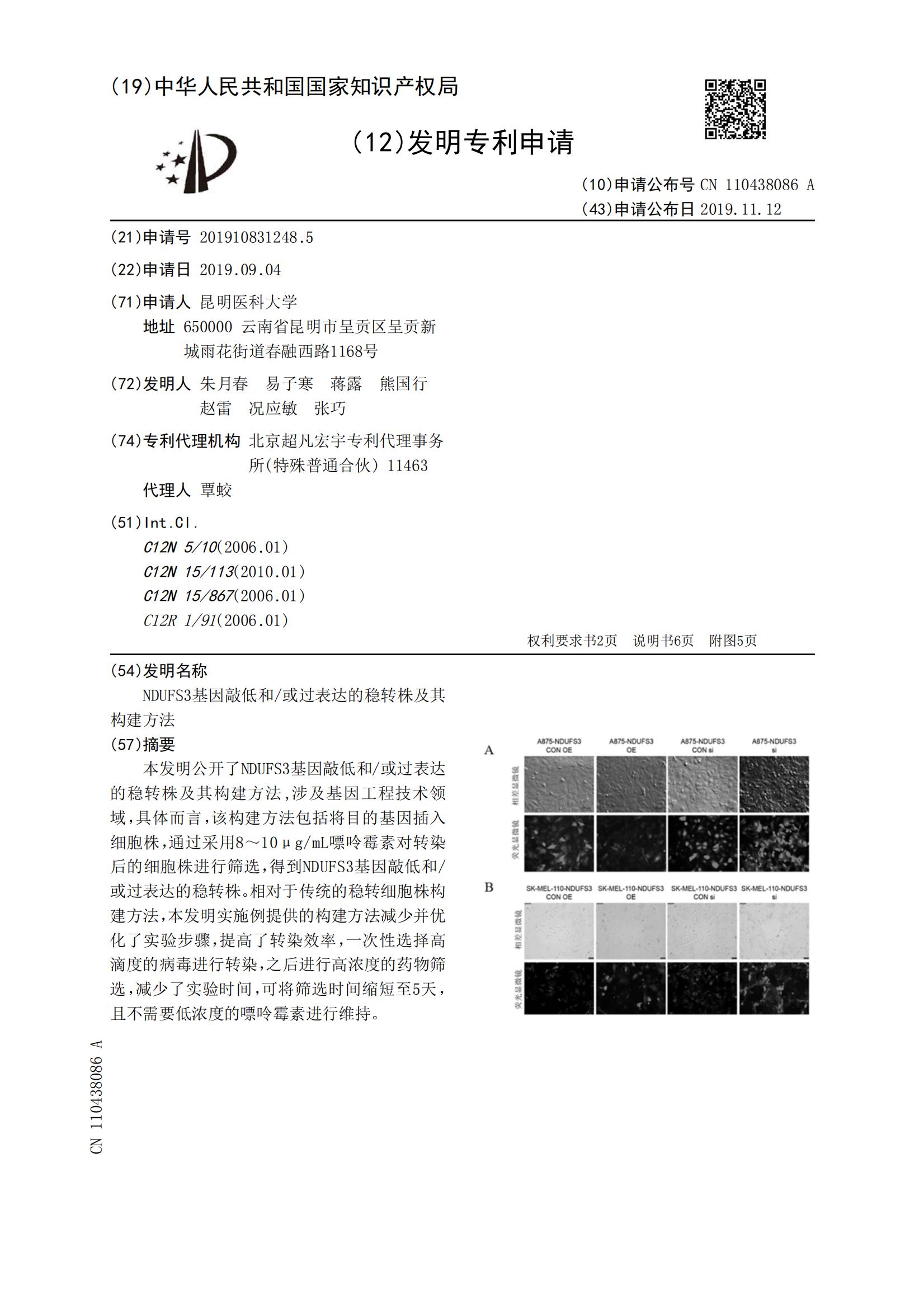 NDUFS3基因敲低和(或)过表达的稳转株及其构建方法