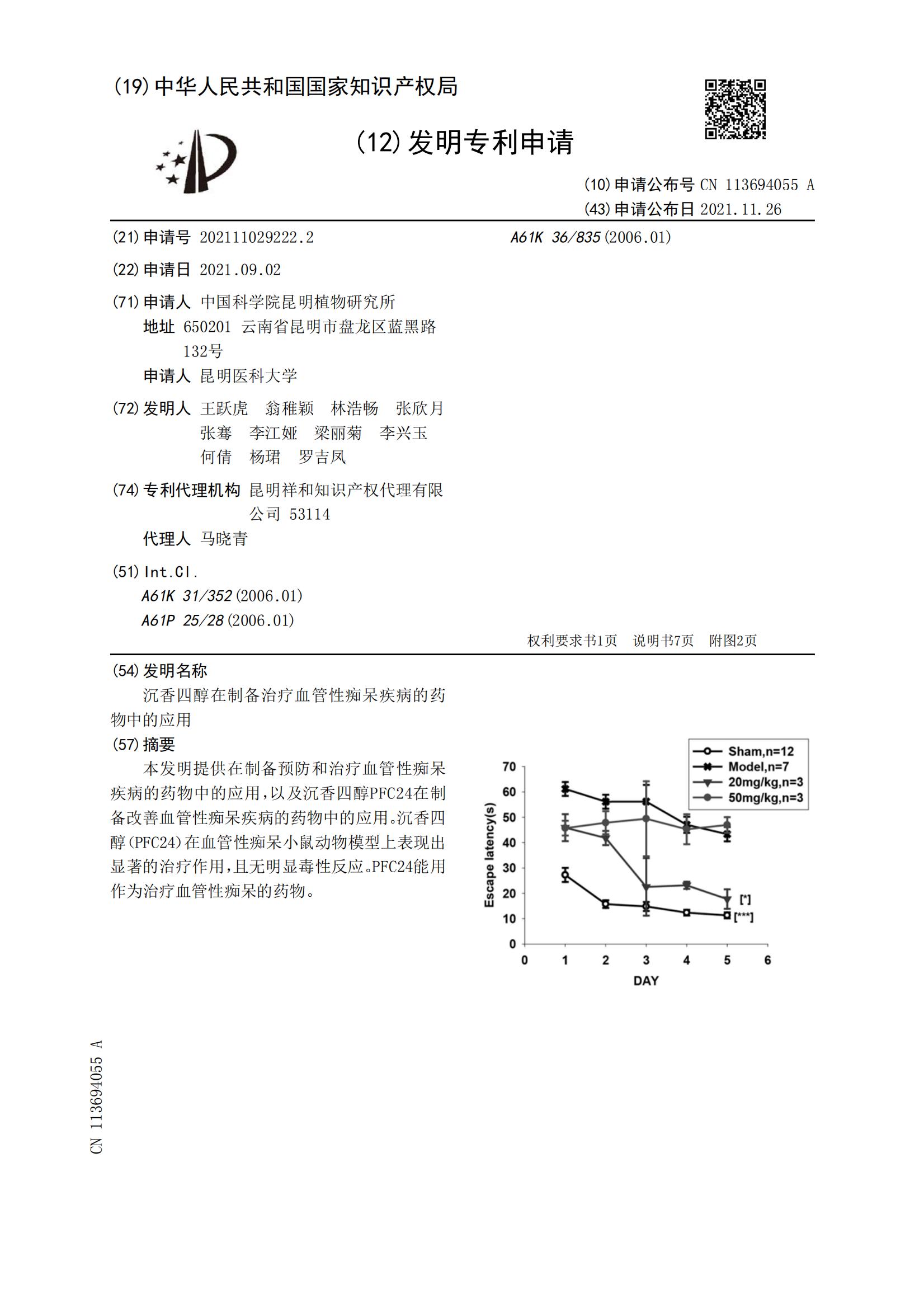 沉香四醇在制备治疗血管性痴呆疾病的药物中的应用