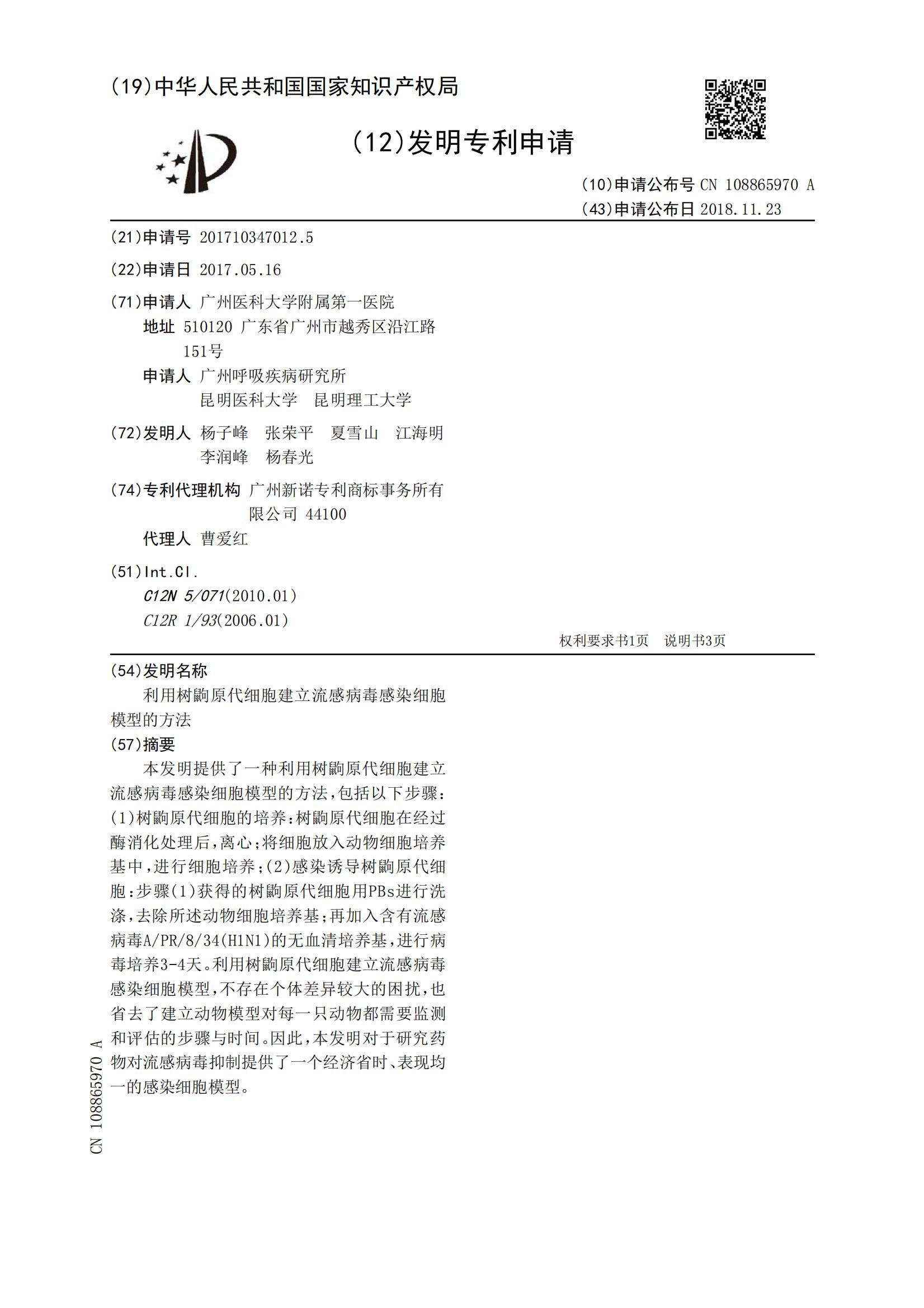 利用树鼩原代细胞建立流感病毒感染细胞模型的方法