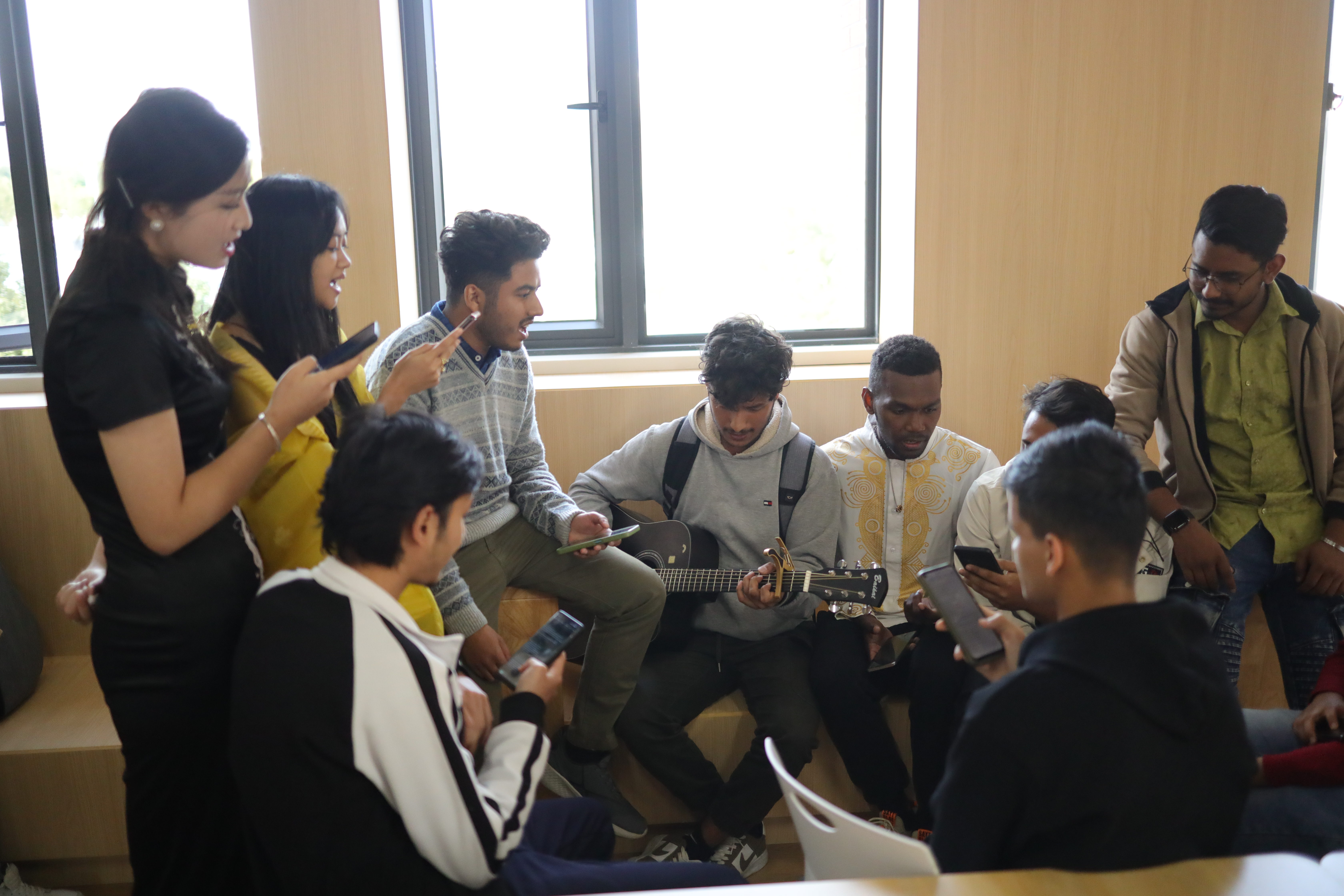 李利华在仪式上致辞,代表学校向国际教育学院学生活动场馆建成启用表示祝贺,肯定了国际教育学院过去12年取得的成绩,希望国际教育学院今后用好学生活动场馆,举办更多内容丰富、形式多样的留学生喜闻乐见的活动,打造具有beat365特色的中外学生文化交流活动品牌。启用仪式后,全体师生合影留念。活动现场中外学生弹奏演唱,共同参与经验分享沙龙、交流学习生活心得,海内外来华留学生校友心怀对母校的挚爱和感恩,以祝福视频的方式表达了对母校的美好祝福。