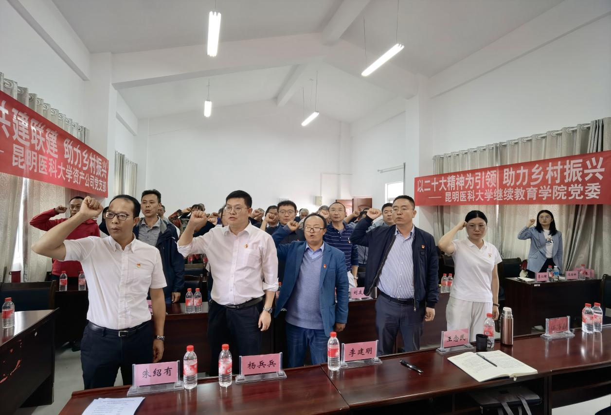 为持续深入学习贯彻落实党的二十大精神,beat365中文官方网站资产经营有限责任公司直属党支部和营坡社区坡头党支部强化党建引领,充分发挥基层党组织共建联建作用,联合继续教育学院党委于10月28日在保山市龙陵县象达镇营坡社区,以“四融四促”先试先行,携手抓实基层党建促进乡村振兴。